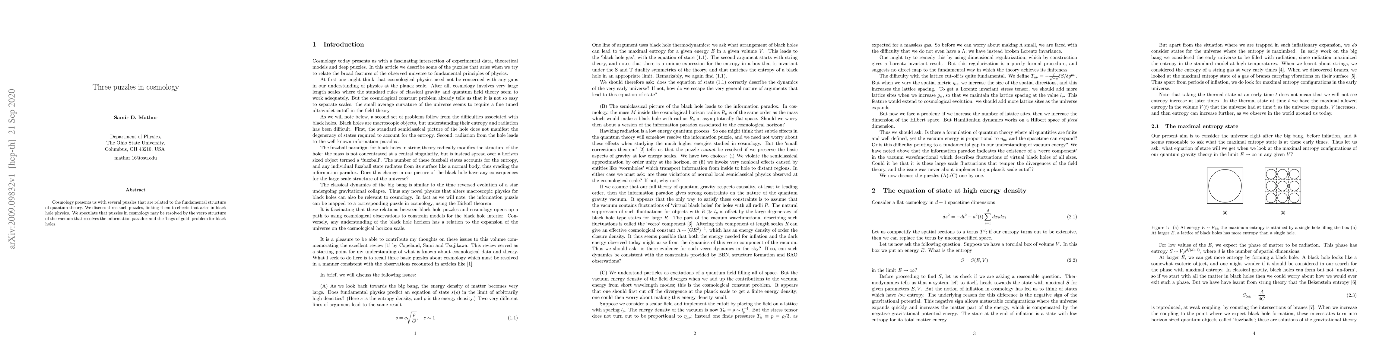 Cosmology presents us with several puzzles that are related to the fundamental structure of quantum theory. We discuss three such puzzles, linking them to effects that arise in black hole physics. We speculate that puzzles in cosmology may be resolved by the vecro structure of the vacuum that resolves the information paradox and the `bags of gold' problem for black holes.