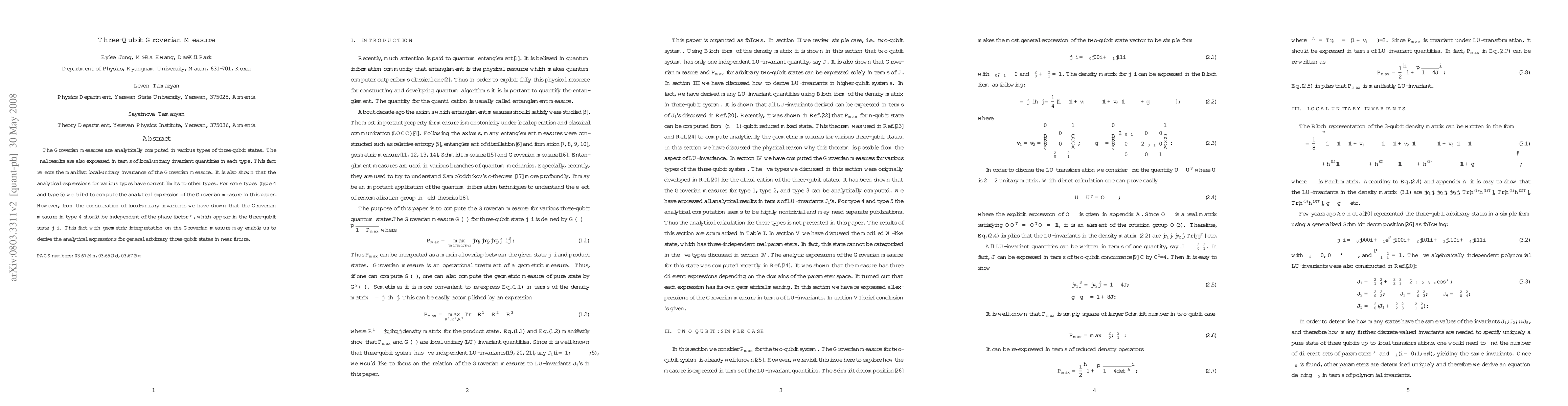 This paper analytically computes Groverian measures in various three-qubit states, demonstrating their local-unitary invariance through invariant quantities. While analytical expressions for types 4 and 5 remain elusive, the study shows that the Groverian measure in type 4 is phase-independent, suggesting potential for future derivations.