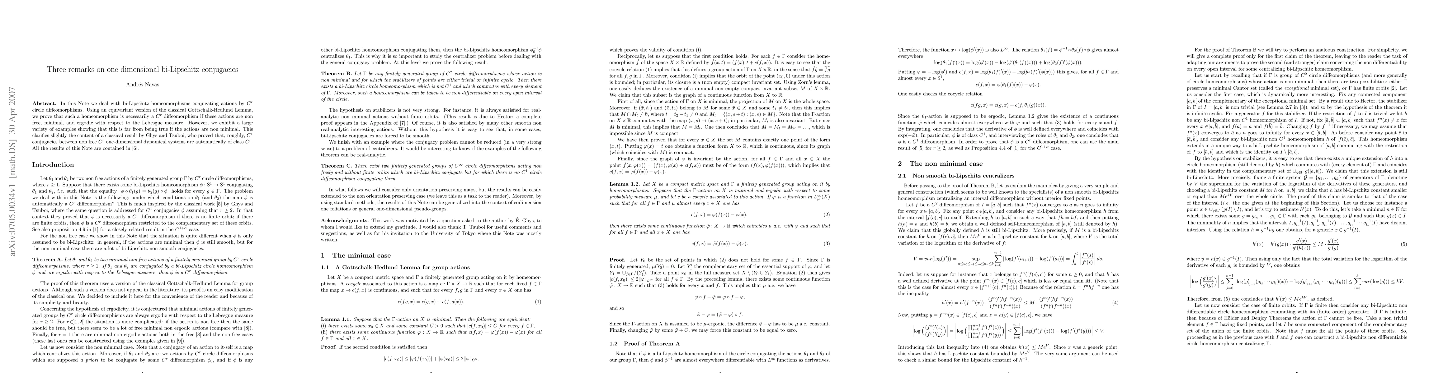 This paper demonstrates that bi-Lipschitz conjugacies between nonsingular one-dimensional systems are necessarily smooth when the systems are minimal and ergodic, contrasting with the non-minimal case where this is not guaranteed, thus refining earlier findings by Ghys and Tsuboi.