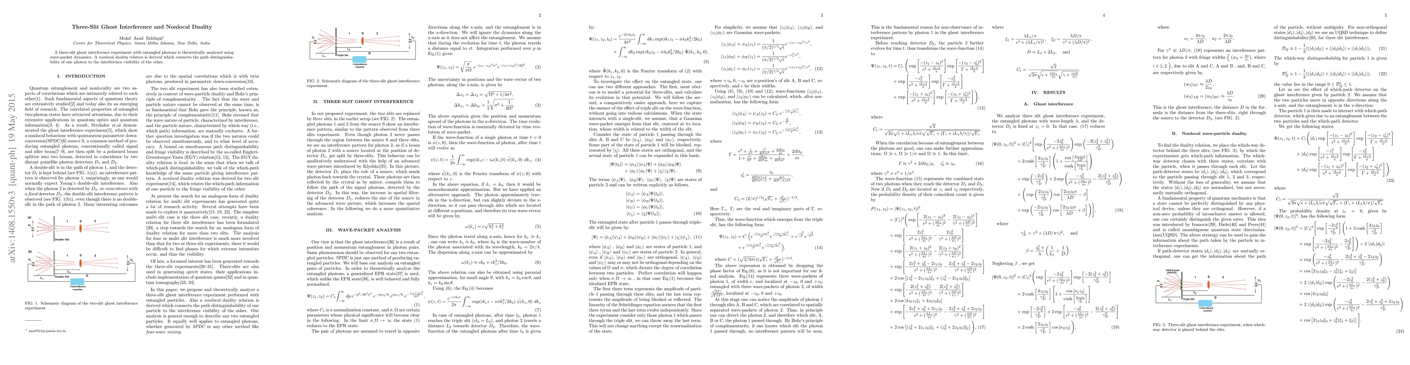 A new three-slit nonlocal duality relation was established, connecting the path distinguishability of one photon to the interference visibility of the other.