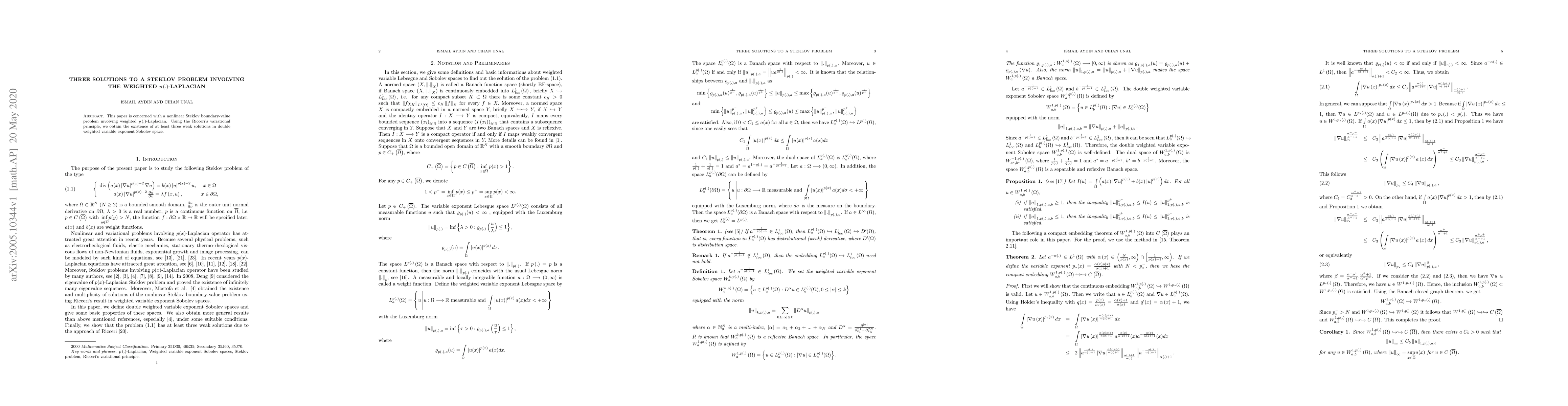 This paper investigates a nonlinear Steklov boundary-value problem with a weighted $p(.)$-Laplacian operator. Utilizing Ricceri's variational principle, it establishes the existence of at least three weak solutions in a double weighted variable exponent Sobolev space.