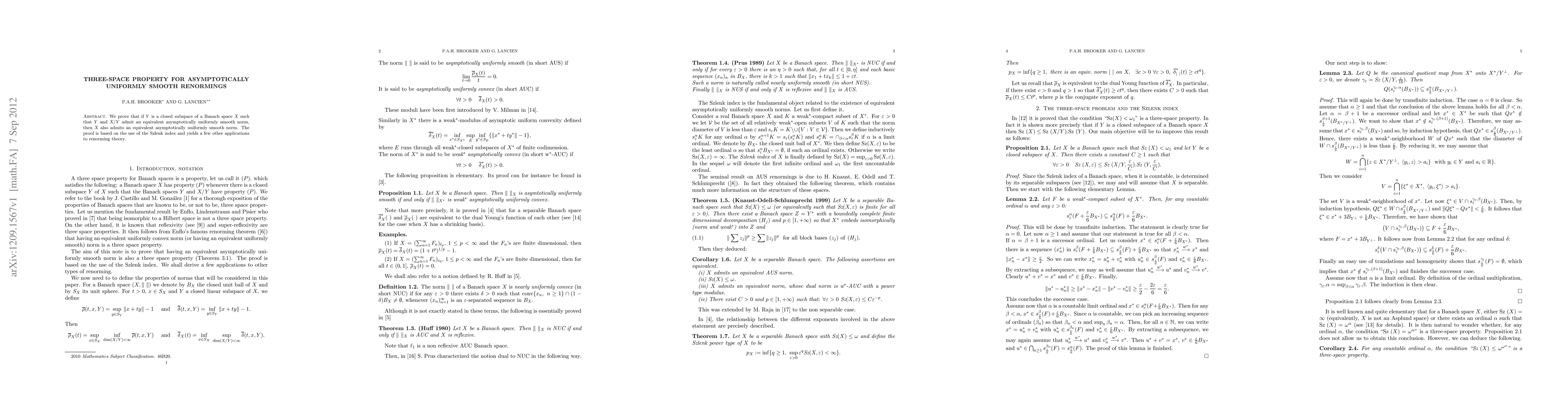 This paper proves that if a Banach space $X$ has a closed subspace $Y$ and its quotient $X/Y$ both admit equivalent asymptotically uniformly smooth norms, then $X$ itself can be renormed to have an asymptotically uniformly smooth norm. The proof leverages the Szlenk index and has implications for renorming theory.
