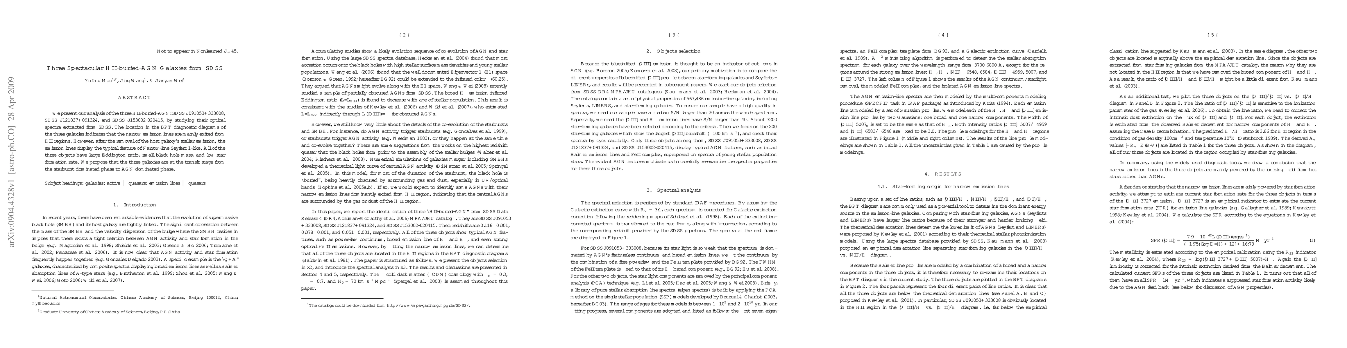 We present our analysis of the three HII-buried-AGN: SDSS J091053+333008, SDSS J121837+091324, and SDSS J153002-020415, by studying their optical spectra extracted from SDSS. The location in the BPT diagnostic diagrams of the three galaxies indicates that the narrow emission lines are mainly exited from HII regions. However, after the removal of the host galaxy's stellar emission, the emission lines display the typical feature of Narrow-line Seyfert 1-like. All of the three objects have large Eddington ratio, small black hole mass, and low star formation rate. We propose that the three galaxies are at the transit stage from the starburst-dominated phase to AGN-dominated phase.