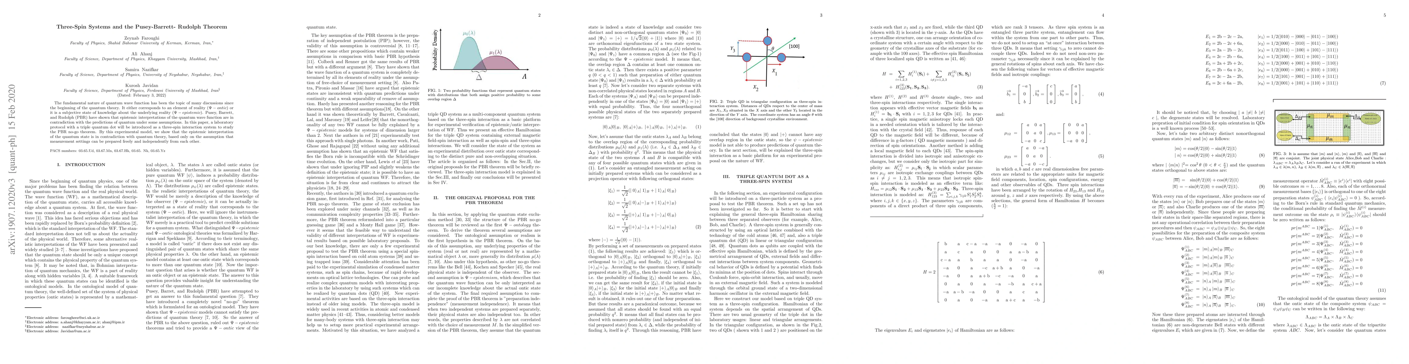 This paper explores the Pusey-Barrett-Rudolph (PBR) theorem through a three-spin system using triple quantum dots, demonstrating that epistemic interpretations of quantum wave functions contradict quantum predictions under the assumption of independent measurement settings. The study supports the PBR no-go theorem, indicating the reality of quantum wave functions.