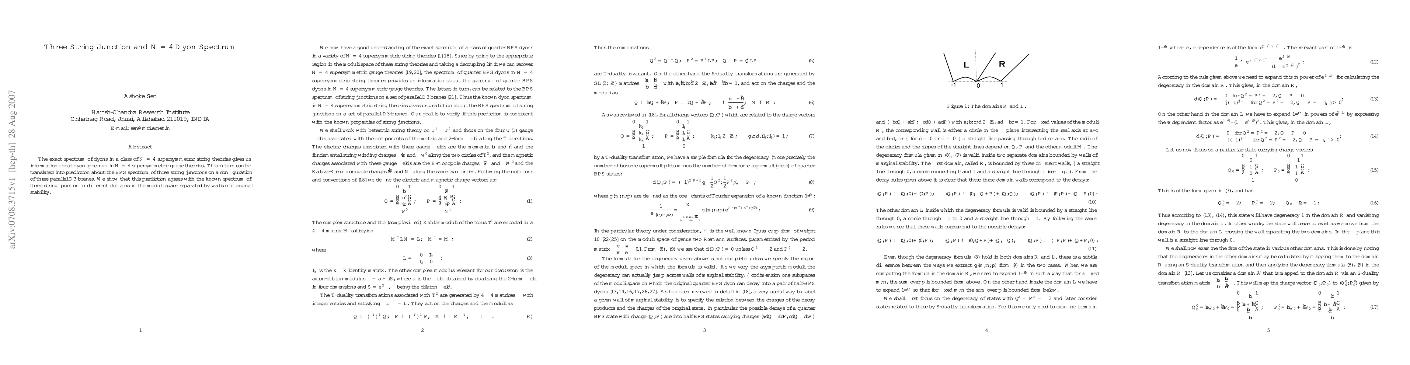 The paper presents an exact spectrum of dyons in N=4 supersymmetric string theories, which aligns with the BPS spectrum of three string junctions on parallel D3-branes, confirming predictions across different stability domains.