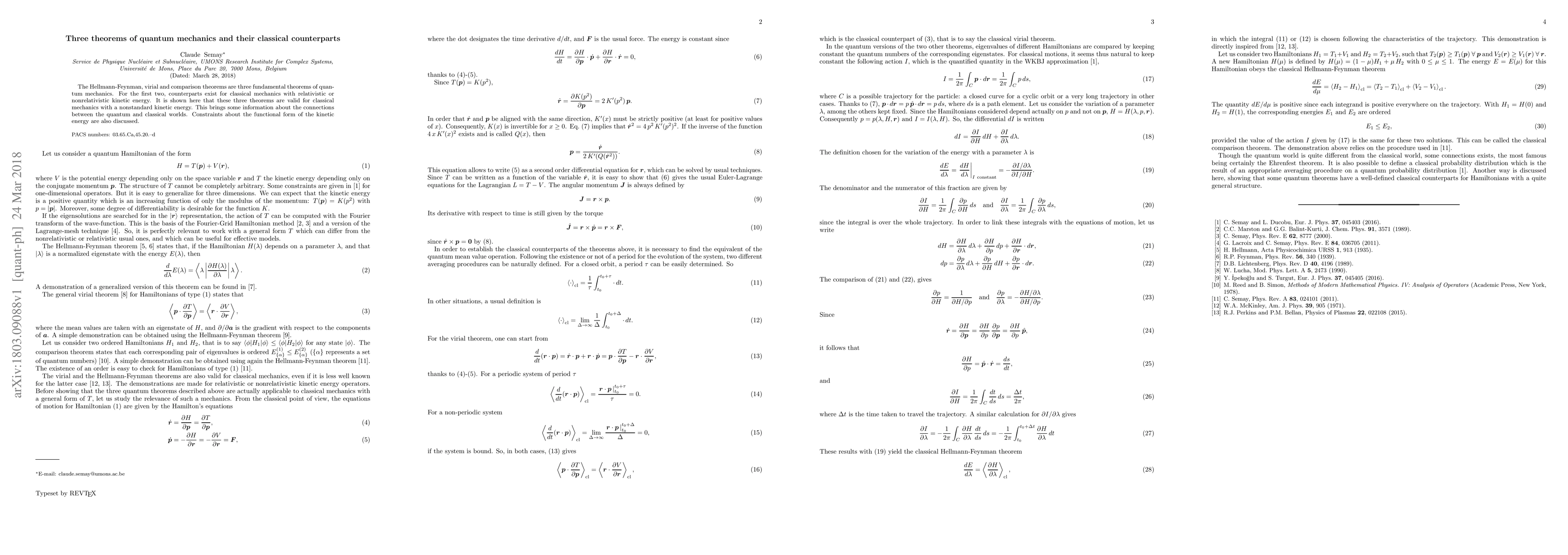 This paper explores the Hellmann-Feynman, virial, and comparison theorems in quantum mechanics and demonstrates their applicability to classical mechanics using a nonstandard kinetic energy form. The study highlights the connections between quantum and classical mechanics and discusses constraints on the kinetic energy's functional form.