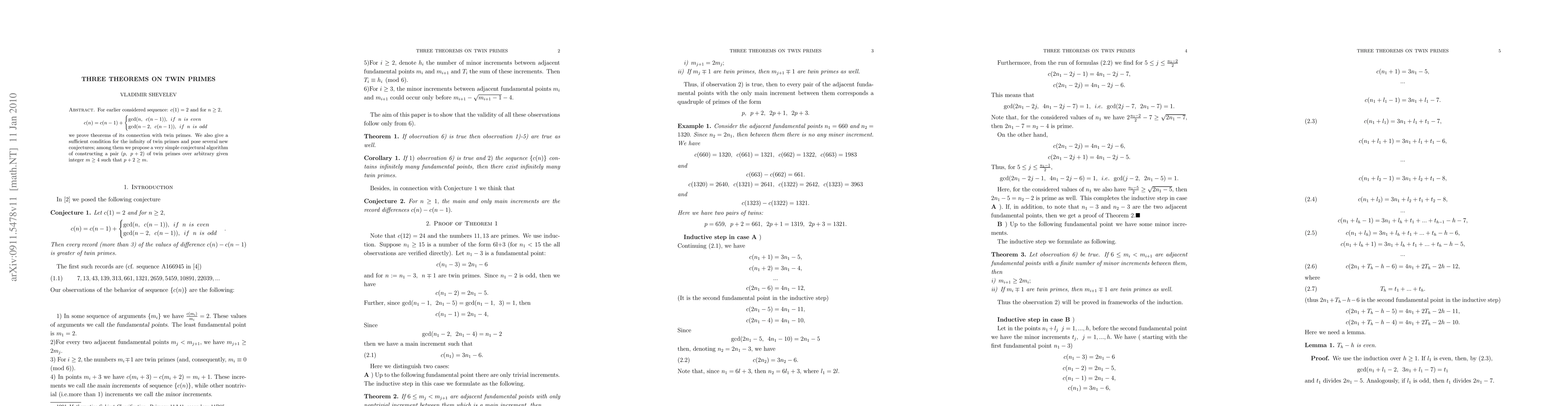 This paper proves three theorems relating the sequence A166944 to twin primes, provides a condition for the infinity of twin primes, and introduces a conjectured algorithm for constructing twin prime pairs given any integer $m \geq 4$ such that $p+2 \geq m$. Several new conjectures are also proposed.