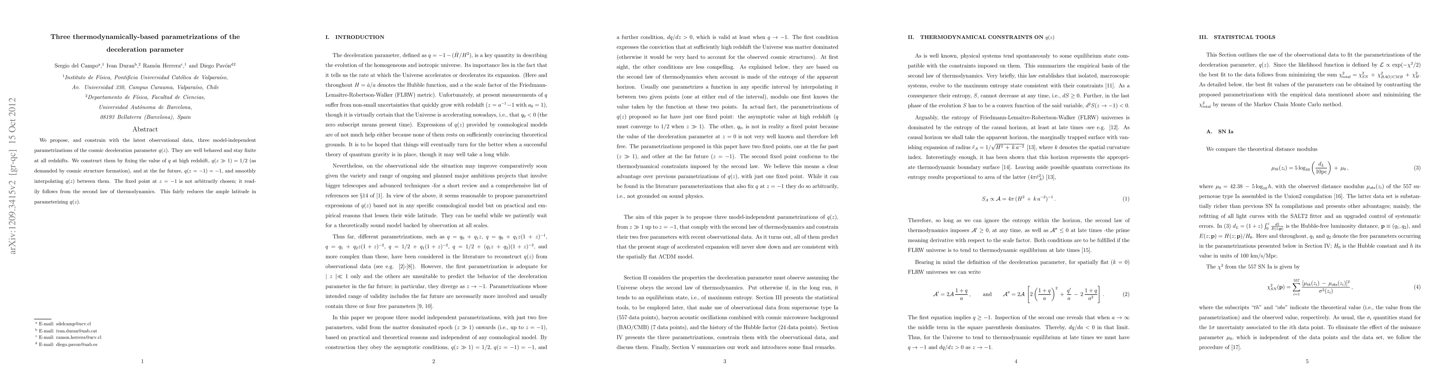 We propose, and constrain with the latest observational data, three model-independent parametrizations of the cosmic deceleration parameter $q(z)$. They are well behaved and stay finite at all redshifts. We construct them by fixing the value of $q$ at high redshift, $q(z \gg 1) = 1/2$ (as demanded by cosmic structure formation), and at the far future, $q(z = -1) = -1$, and smoothly interpolating $q(z)$ between them. The fixed point at $z = -1$ is not arbitrarily chosen; it readily follows from the second law of thermodynamics. This fairly reduces the ample latitude in parameterizing $q(z)$.