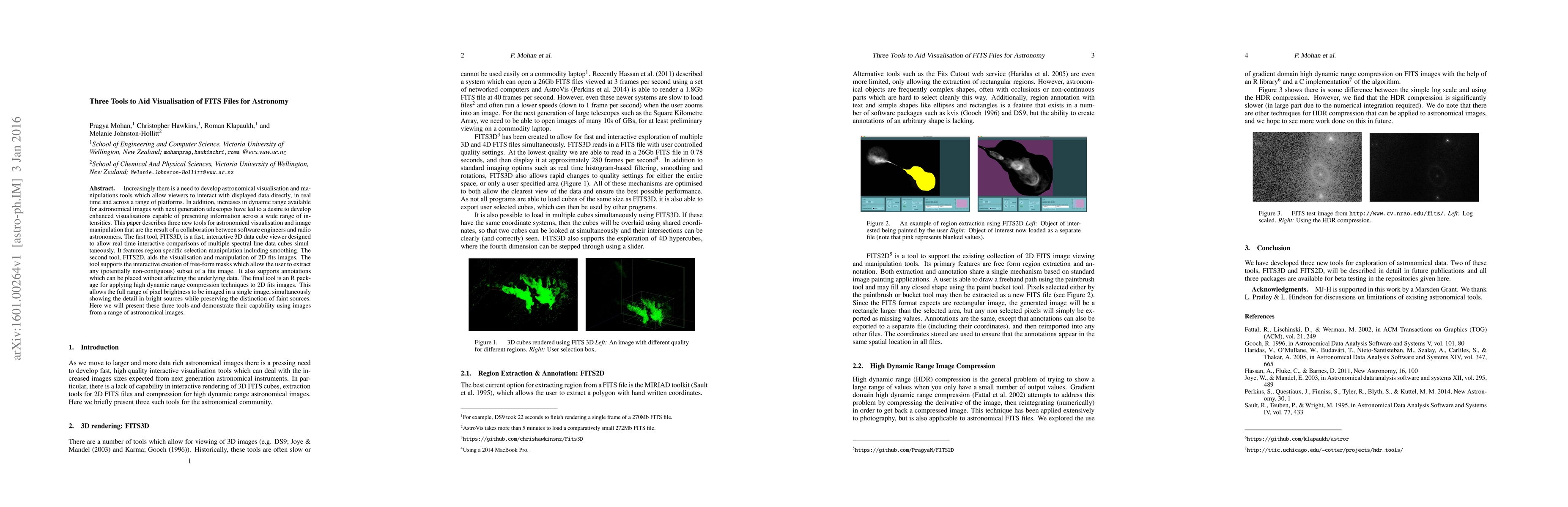 This paper introduces three new tools for enhancing astronomical data visualisation: FITS3D for interactive 3D data cube comparisons, FITS2D for manipulating and masking 2D FITS images, and an R package for high dynamic range compression of 2D FITS images. These tools aim to facilitate real-time, platform-independent data interaction and improved image representation across varying intensities.