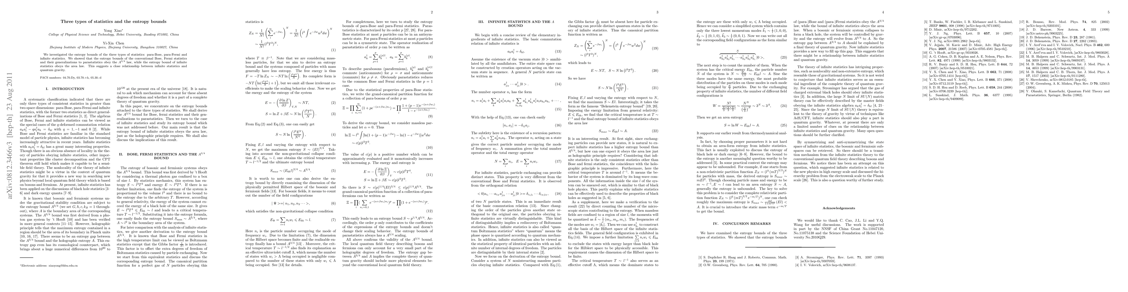 This paper explores entropy bounds for para-Bose, para-Fermi, and infinite statistics, revealing that parastatistics follow the $A^{3/4}$ law, while infinite statistics adhere to the area law, hinting at a connection to quantum gravity.
