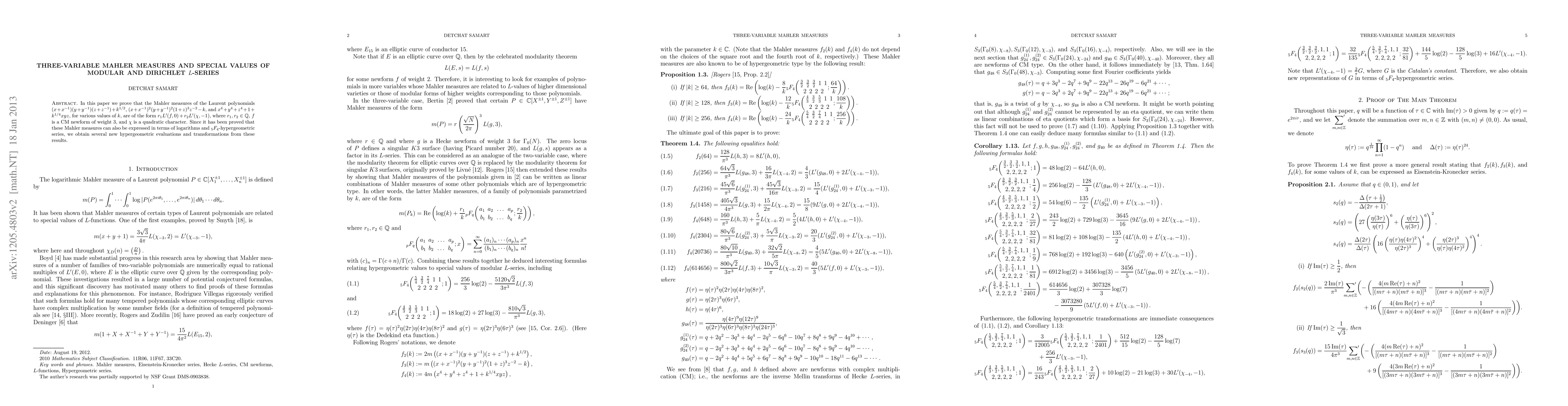 This paper establishes connections between Mahler measures of specific Laurent polynomials and special values of modular and Dirichlet L-series, leading to new hypergeometric evaluations and transformations. The Mahler measures are expressed in terms of L-series derivatives and further related to logarithmic forms and hypergeometric series.