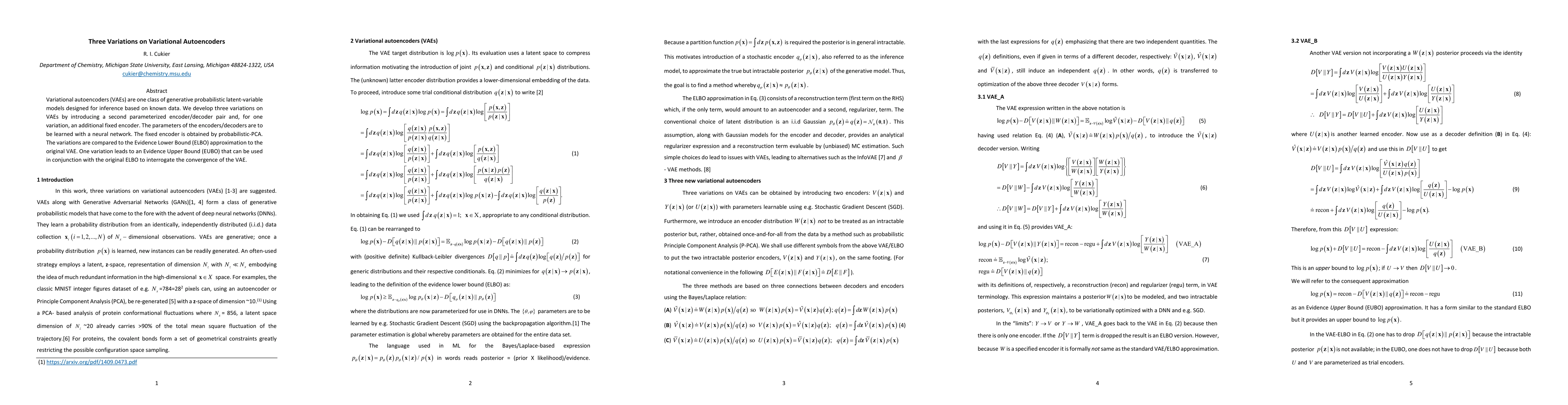 This paper proposes three variations of variational autoencoders (VAEs) by adding a second encoder/decoder pair and, in one case, a fixed encoder derived from probabilistic-PCA. These variations are evaluated against the original VAE's Evidence Lower Bound (ELBO), with one variation introducing an Evidence Upper Bound (EUBO) to help assess VAE convergence.