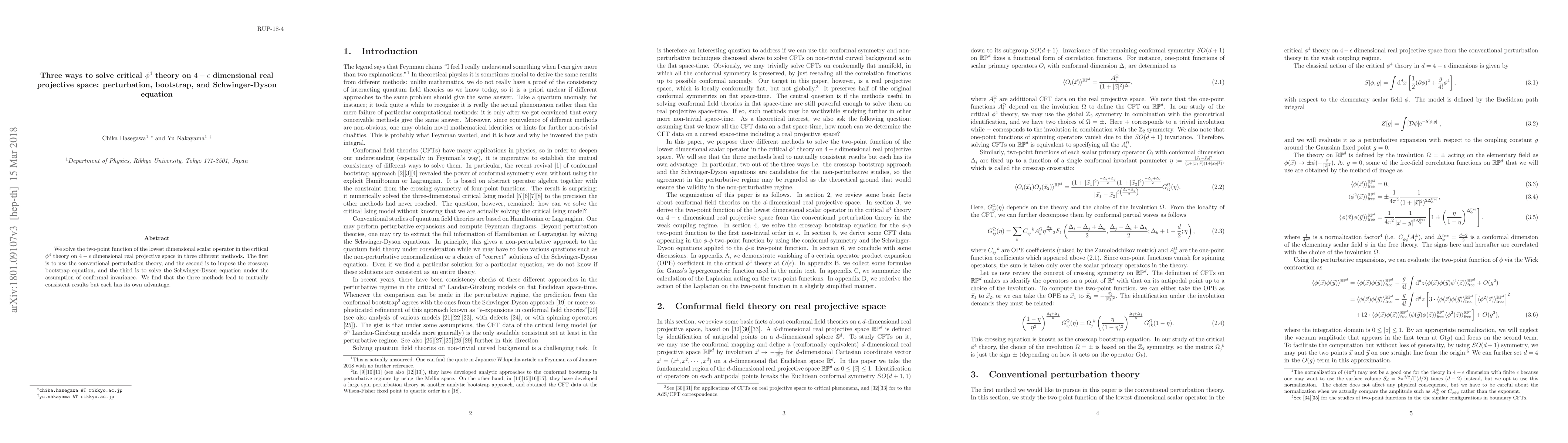 This paper explores the two-point function of the critical $\phi^4$ theory on $4-\epsilon$ dimensional real projective space using three distinct methods: perturbation theory, the crosscap bootstrap, and the Schwinger-Dyson equation. The results from all three approaches are consistent, highlighting the strengths of each method.