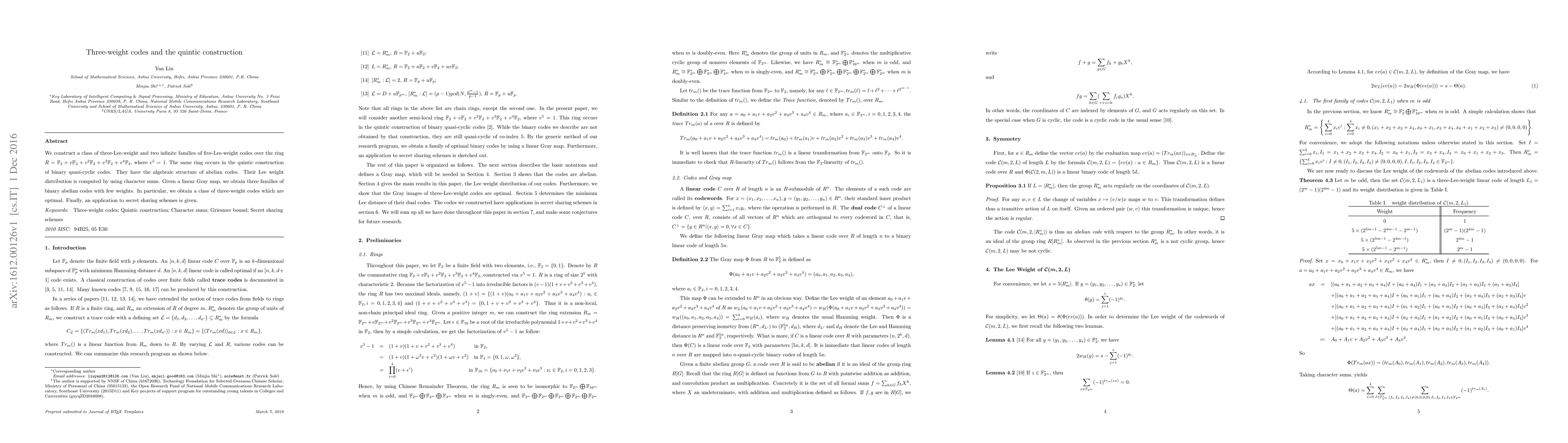 Researchers develop a class of three-Lee-weight codes over a specific ring, which can be used to create binary abelian codes with few weights, including optimal three-weight codes. The findings have implications for secret sharing schemes.