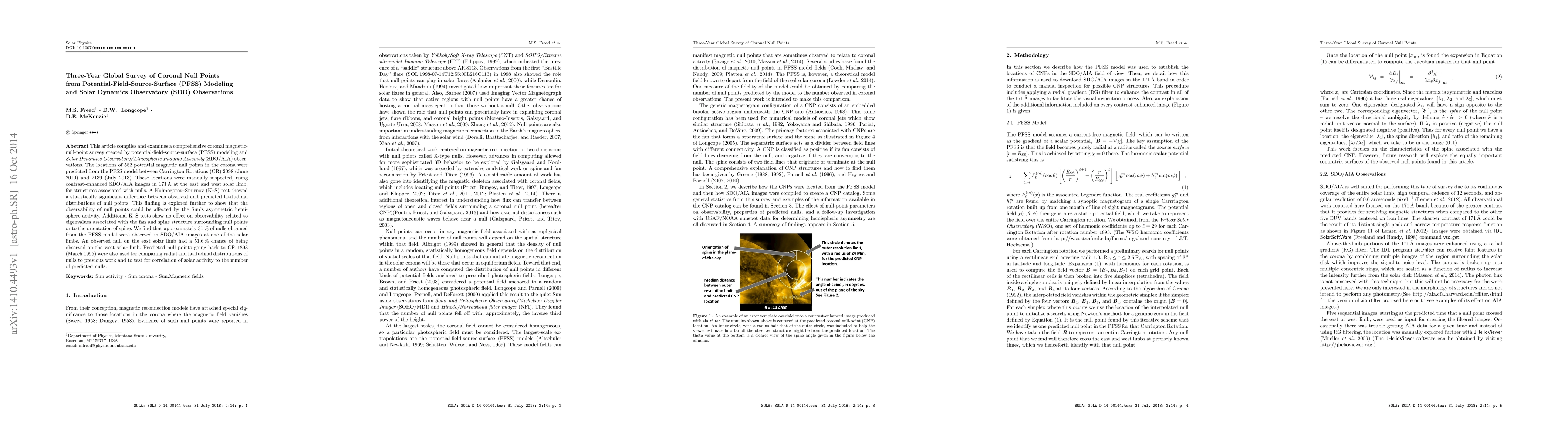 This research identifies and verifies 31% of 582 predicted coronal magnetic null points from 2010-2013 using PFSS modeling and SDO/AIA observations. It reveals that null point observability is influenced by asymmetric solar hemisphere activity, not by eigenvalues or spine orientation, with a 51.6% chance of observing a null on the opposite limb.