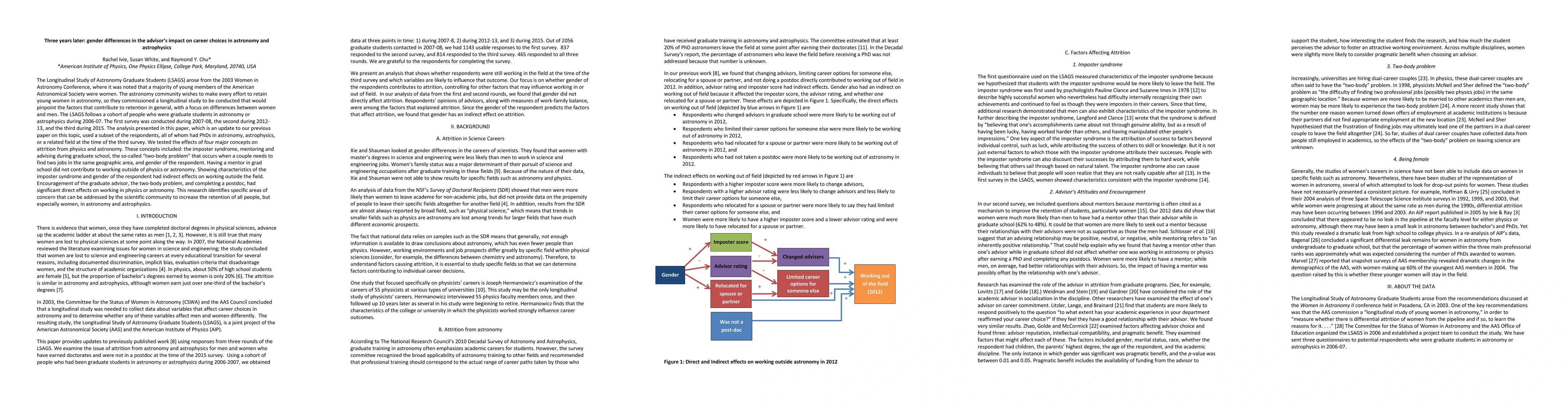 This study updates findings on gender differences in career retention in astronomy and astrophysics, focusing on the impact of graduate advisors and other factors. It found that while having a mentor did not affect attrition, the two-body problem, advisor encouragement, and postdoc completion significantly influenced retention, highlighting areas for targeted efforts to boost retention, especially for women.