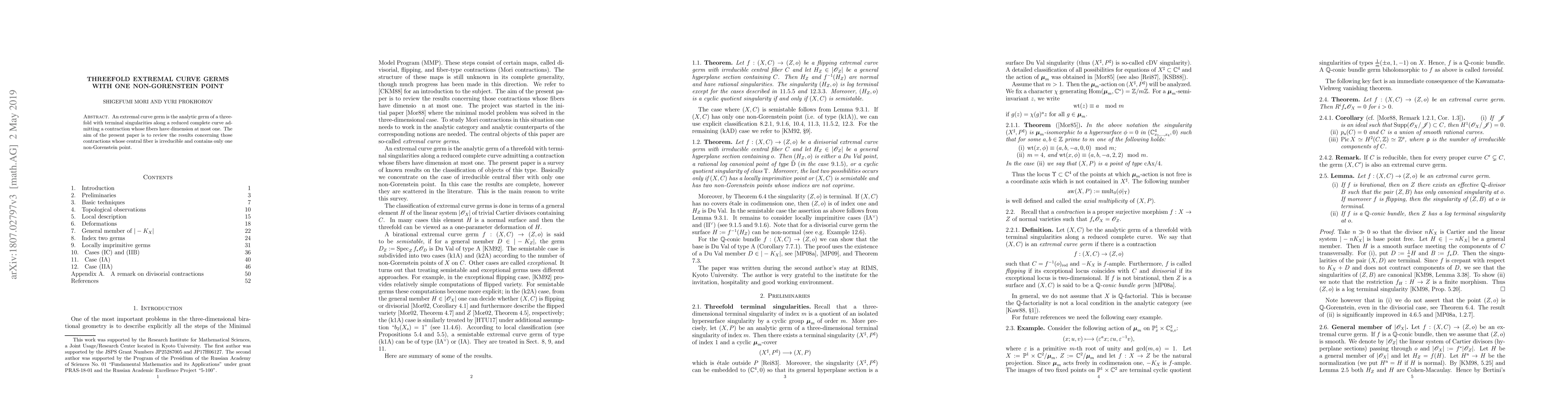 This paper reviews extremal curve germs in threefolds with terminal singularities, focusing on contractions where the central fiber is irreducible and contains a single non-Gorenstein point. It explores the properties and implications of such geometric configurations.