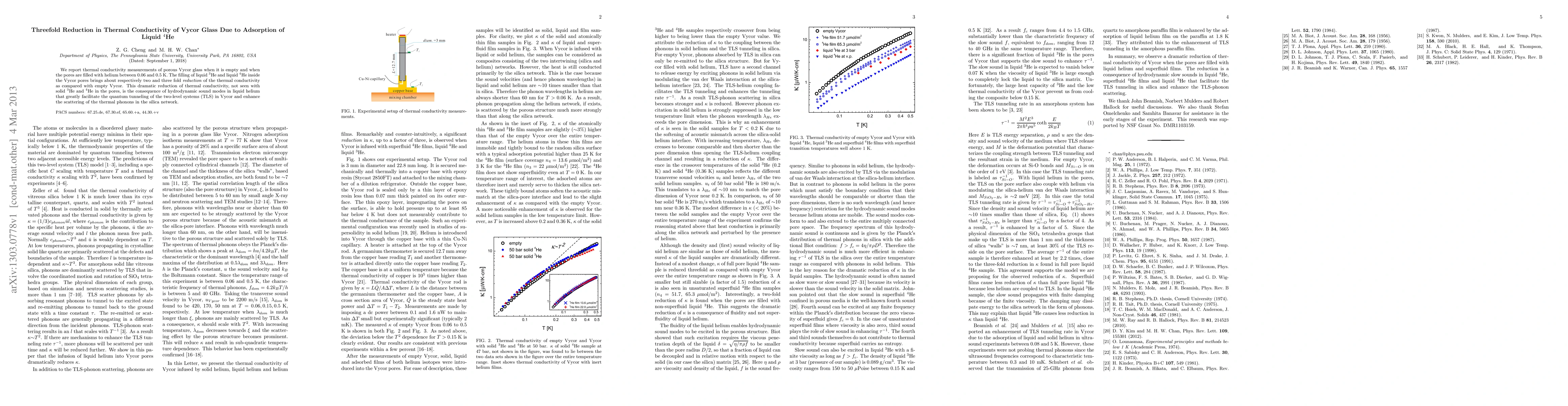 This study demonstrates that filling Vycor glass pores with liquid 4He reduces its thermal conductivity threefold compared to empty Vycor, due to enhanced scattering of thermal phonons by hydrodynamic sound modes in the liquid helium. This effect is not observed with solid helium or liquid 3He.