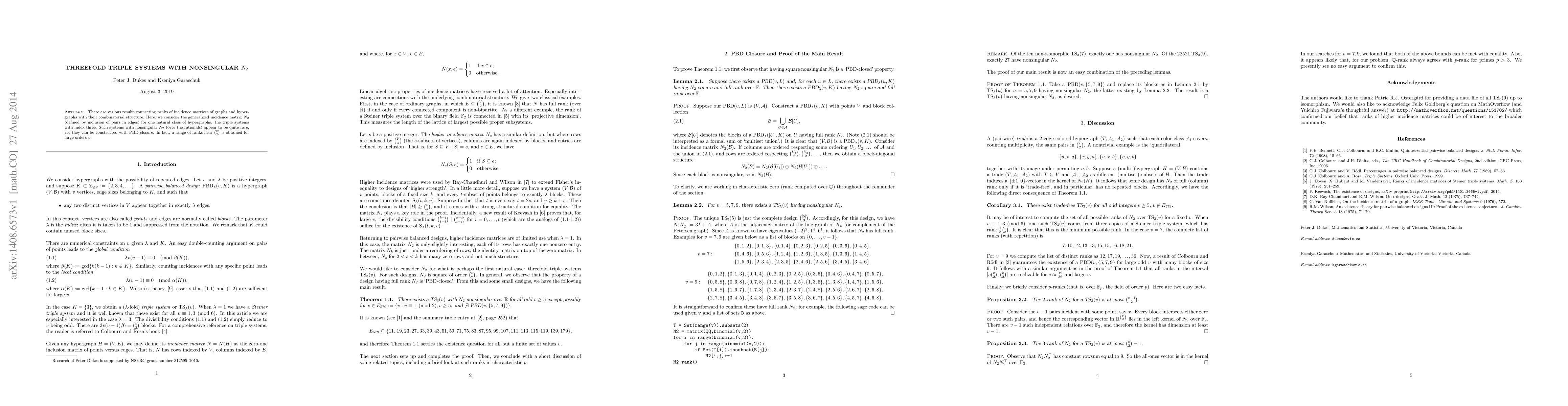 There are various results connecting ranks of incidence matrices of graphs and hypergraphs with their combinatorial structure. Here, we consider the generalized incidence matrix $N_2$ (defined by inclusion of pairs in edges) for one natural class of hypergraphs: the triple systems with index three. Such systems with nonsingular $N_2$ (over the rationals) appear to be quite rare, yet they can be constructed with PBD closure. In fact, a range of ranks near $\binom{v}{2}$ is obtained for large orders $v$.