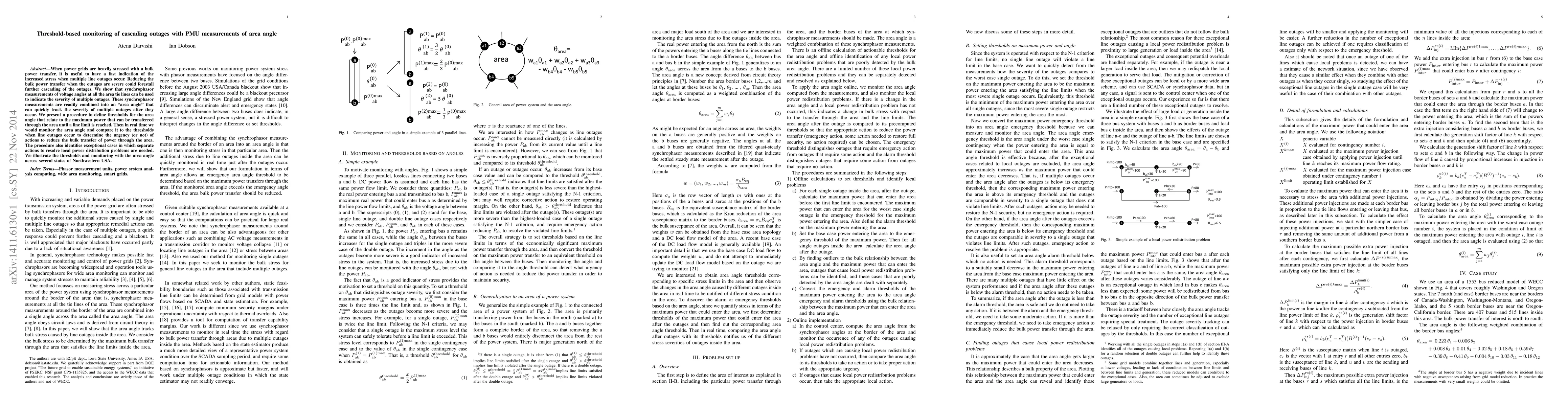When power grids are heavily stressed with a bulk power transfer, it is useful to have a fast indication of the increased stress when multiple line outages occur. Reducing the bulk power transfer when the outages are severe could forestall further cascading of the outages. We show that synchrophasor measurements of voltage angles at all the area tie lines can be used to indicate the severity of multiple outages. These synchrophasor measurements are readily combined into an "area angle" that can quickly track the severity of multiple outages after they occur. We present a procedure to define thresholds for the area angle that relate to the maximum power that can be transferred through the area until a line limit is reached. Then in real time we would monitor the area angle and compare it to the thresholds when line outages occur to determine the urgency (or not) of actions to reduce the bulk transfer of power through the area. The procedure also identifies exceptional cases in which separate actions to resolve local power distribution problems are needed. We illustrate the thresholds and monitoring with the area angle across several states of Northwestern USA.