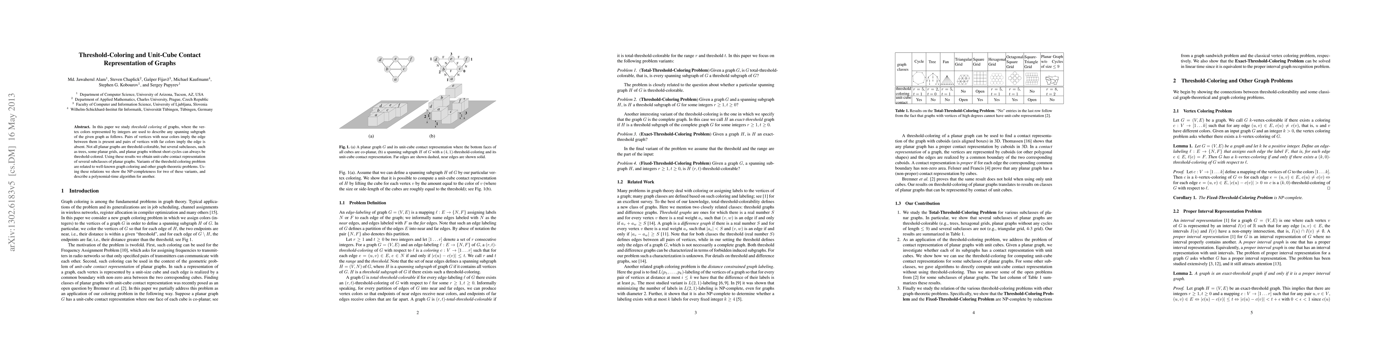 This paper investigates threshold coloring in graphs, where vertex colors indicate the presence or absence of edges based on color proximity. It demonstrates that while not all planar graphs are threshold-colorable, certain subclasses like trees and planar grids can always be threshold-colored. The study also introduces unit-cube contact representations for these subclasses and establishes the NP-completeness for some threshold coloring variants.