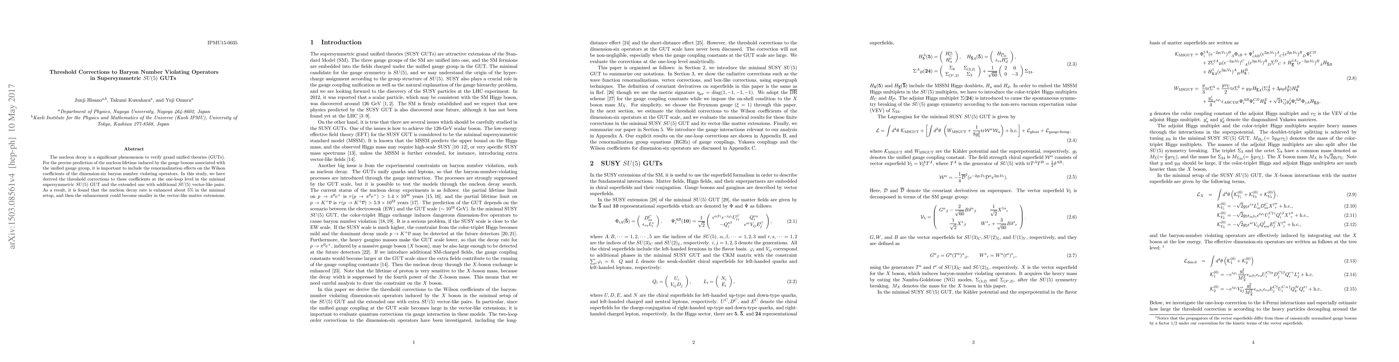 This paper derives one-loop threshold corrections to the Wilson coefficients of dimension-six baryon number violating operators in supersymmetric SU(5) GUTs, finding a 5% enhancement in nucleon decay rate in the minimal model, which may be reduced with additional vector-like pairs.