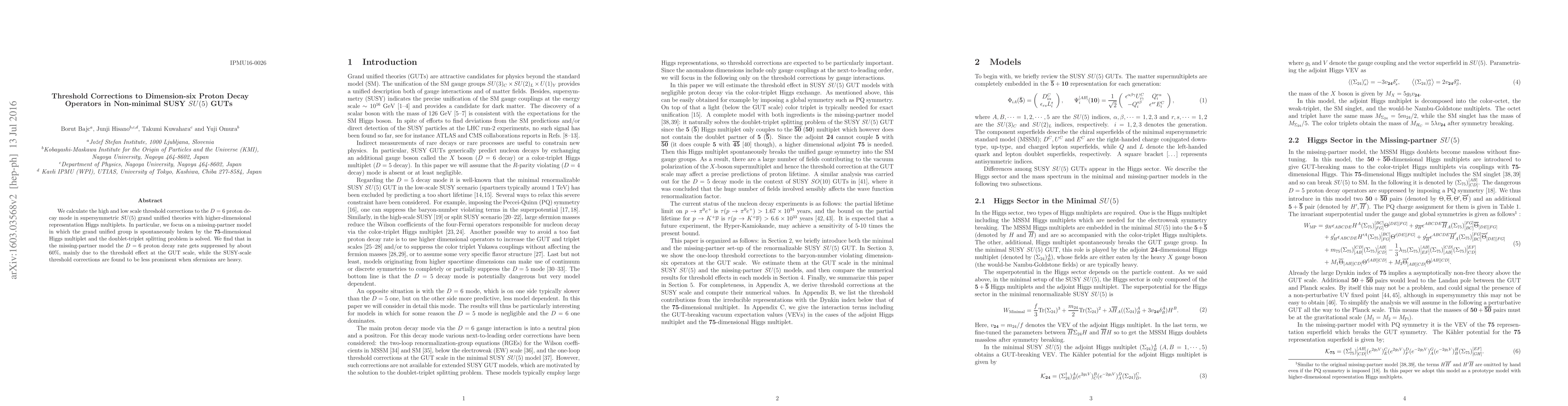This paper calculates threshold corrections to dimension-six proton decay operators in non-minimal SUSY SU(5) GUTs, focusing on a missing-partner model. It finds that the decay rate is suppressed by about 60% due to GUT scale threshold effects, with less significant SUSY-scale corrections when sfermions are heavy.