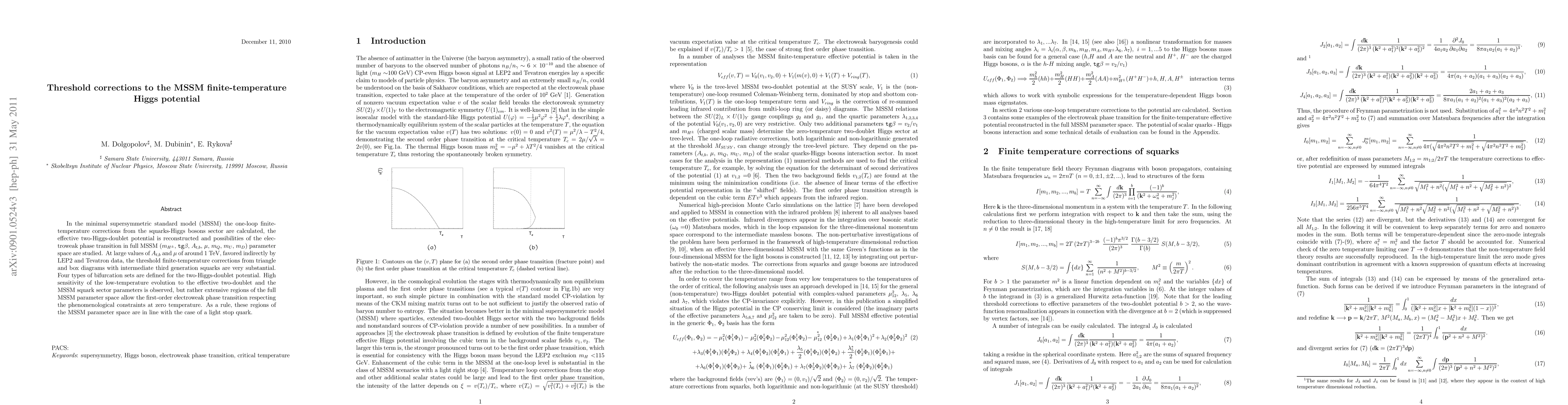 Researchers studied finite-temperature corrections in the MSSM Higgs potential, finding that certain regions of the parameter space can lead to first-order electroweak phase transitions, even at zero temperature.