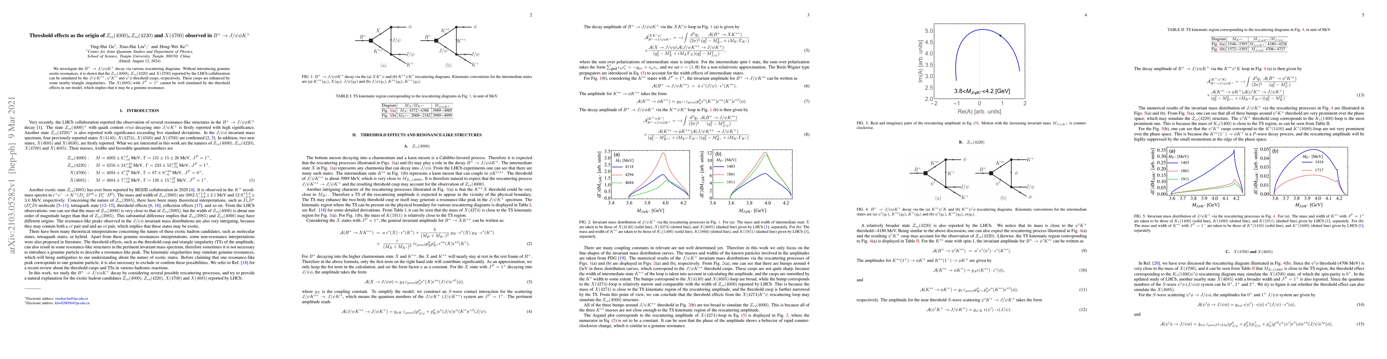 We investigate the $B^+\to J/\psi \phi K^+$ decay via various rescattering diagrams. Without introducing genuine exotic resonances, it is shown that the $Z_{cs}(4000)$, $Z_{cs}(4220)$ and $X(4700)$ reported by the LHCb collaboration can be simulated by the $J/\psi K^{*+}$, $\psi^\prime K^+$ and $\psi^\prime \phi$ threshold cusps, respectively. These cusps are enhanced by some nearby triangle singularities. The $X(4685)$ with $J^P=1^+$ cannot be well simulated by the threshold effects in our model, which implies that it may be a genuine resonance.