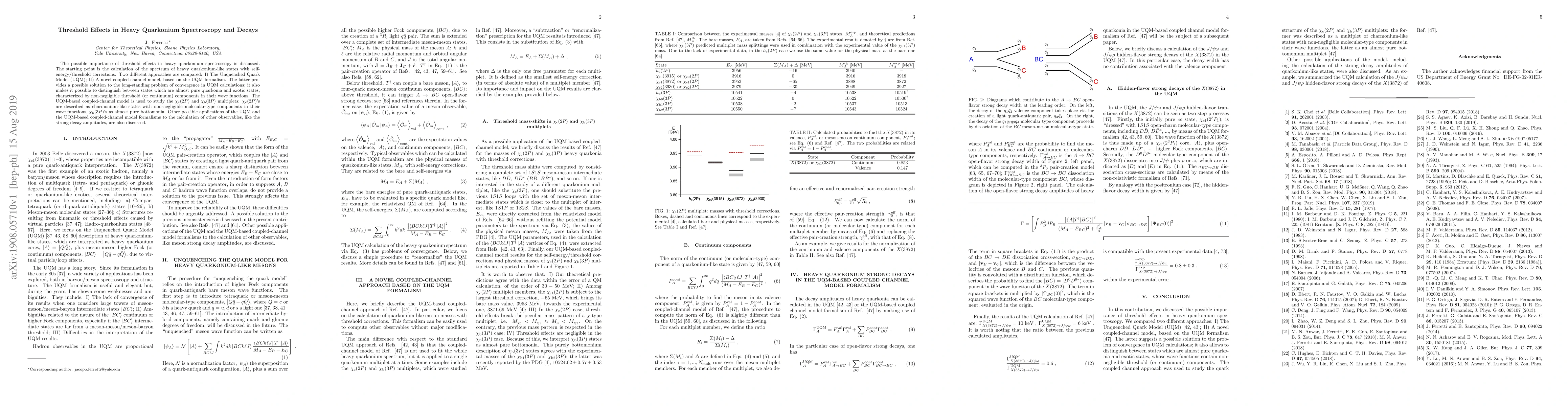 The possible importance of threshold effects in heavy quarkonium spectroscopy is discussed. The starting point is the calculation of the spectrum of heavy quarkonium-like states with self-energy/threshold corrections. Two different approaches are compared: I) The Unquenched Quark Model (UQM); II) A novel coupled-channel model, based on the UQM formalism. The latter provides a possible solution to the long-standing problem of convergence in UQM calculations; it also makes it possible to distinguish between states which are almost pure quarkonia and exotic states, characterized by non-negligible threshold (or continuum) components in their wave functions. The UQM-based coupled-channel model is used to study the $\chi_{\rm c}(2P)$ and $\chi_{\rm b}(3P)$ multiplets: $\chi_{\rm c}(2P)$'s are described as charmonium-like states with non-negligible molecular-type components in their wave functions, $\chi_{\rm b}(3P)$'s as almost pure bottomonia. Other possible applications of the UQM and the UQM-based coupled-channel model formalisms to the calculation of other observables, like the strong decay amplitudes, are also discussed.