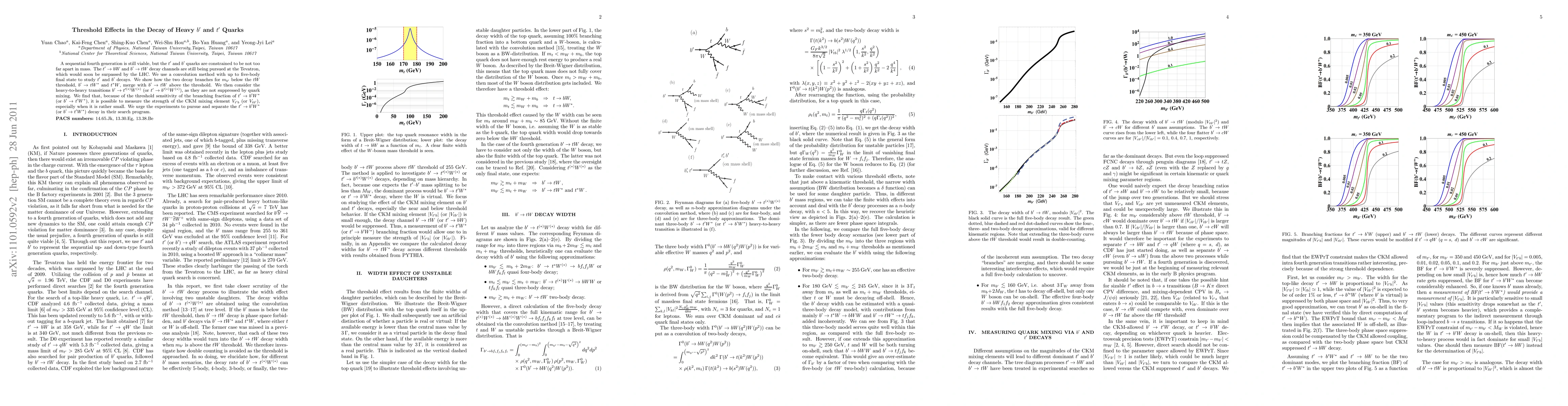 A sequential fourth generation is still viable, but the t' and b' quarks are constrained to be not too far apart in mass. The t'{\to}bW and b'{\to}tW decay channels are still being pursued at the Tevatron, which would soon be surpassed by the LHC. We use a convolution method with up to five-body final state to study t' and b' decays. We show how the two decay branches for m_{b'} below the tW threshold, b'{\to}tW^* and t^*W, merge with b'{\to}tW above the threshold. We then consider the heavy-to-heavy transitions b'{\to}t^{\prime(*)}W^{(*)} (or t'{\to}b^{\prime(*)}W^{(*)}), as they are not suppressed by quark mixing. We find that, because of the threshold sensitivity of the branching fraction of t'{\to}b'W^* (or b'{\to}t'W^*), it is possible to measure the strength of the CKM mixing element V_{t'b} (or V_{tb'}), especially when it is rather small. We urge the experiments to pursue and separate the t'{\to}b'W^* (or b'{\to}t'W^*) decay in their search program.