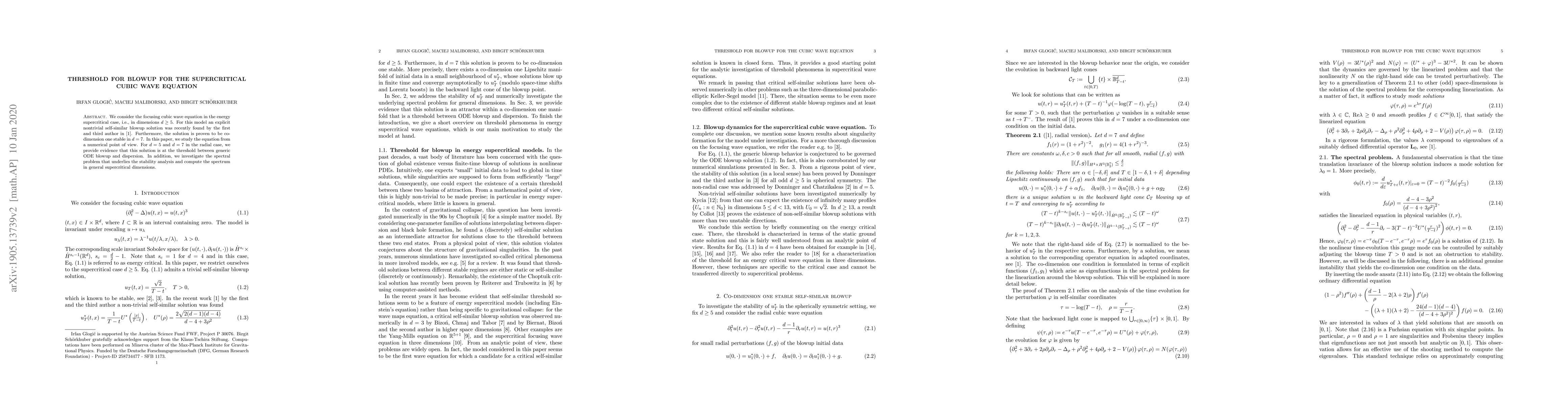 This paper numerically investigates the supercritical cubic wave equation in dimensions $d \geq 5$ and provides evidence that a recently found self-similar blowup solution is at the threshold between generic ODE blowup and dispersion for $d=5$ and $d=7$. It also computes the spectral problem's spectrum in general supercritical dimensions.