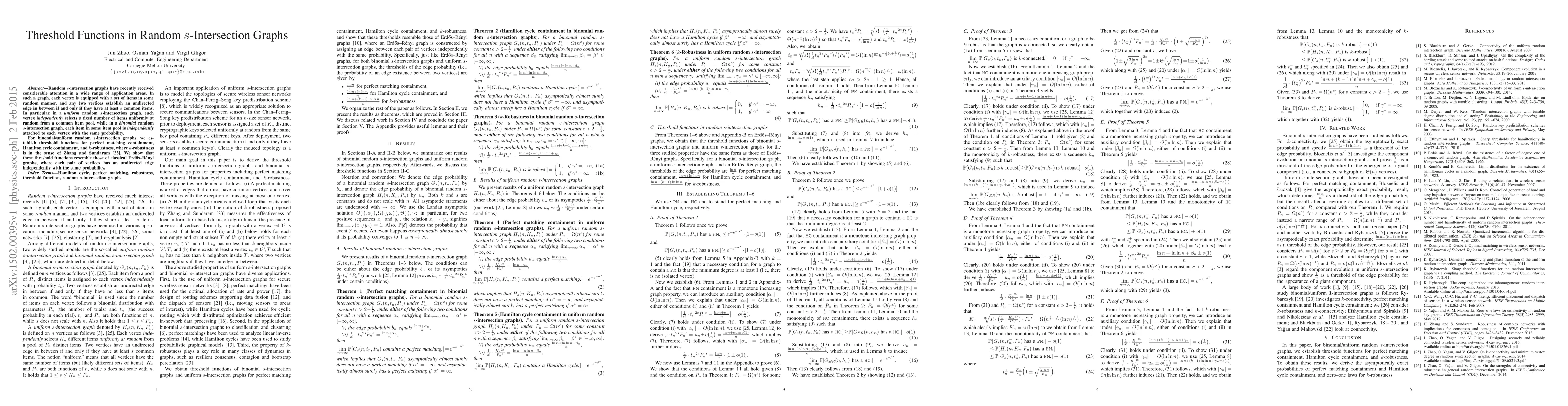 Random $s$-intersection graphs have recently received considerable attention in a wide range of application areas. In such a graph, each vertex is equipped with a set of items in some random manner, and any two vertices establish an undirected edge in between if and only if they have at least $s$ common items. In particular, in a uniform random $s$-intersection graph, each vertex independently selects a fixed number of items uniformly at random from a common item pool, while in a binomial random $s$-intersection graph, each item in some item pool is independently attached to each vertex with the same probability. For binomial/uniform random $s$-intersection graphs, we establish threshold functions for perfect matching containment, Hamilton cycle containment, and $k$-robustness, where $k$-robustness is in the sense of Zhang and Sundaram [IEEE Conf. on Decision & Control '12]. We show that these threshold functions resemble those of classical Erd\H{o}s-R\'{e}nyi graphs, where each pair of vertices has an undirected edge independently with the same probability.