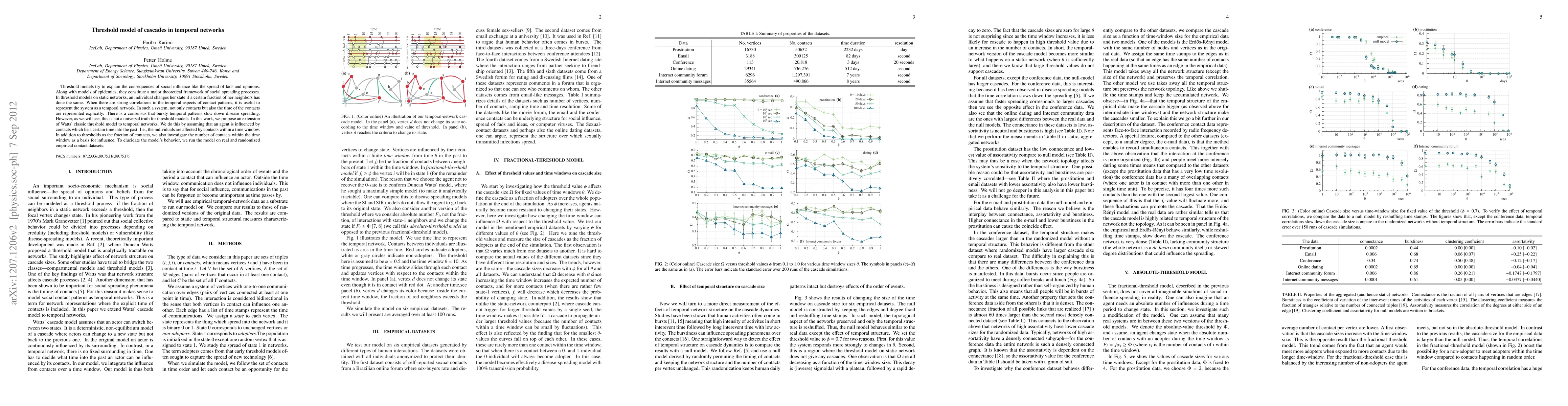 This paper extends Watts' threshold model to temporal networks to explore how social influence spreads under time-dependent contact patterns. It finds that bursty temporal patterns do not universally slow down threshold model cascades, unlike in epidemic models, and investigates the influence of both contact thresholds and contact frequency within a time window.
