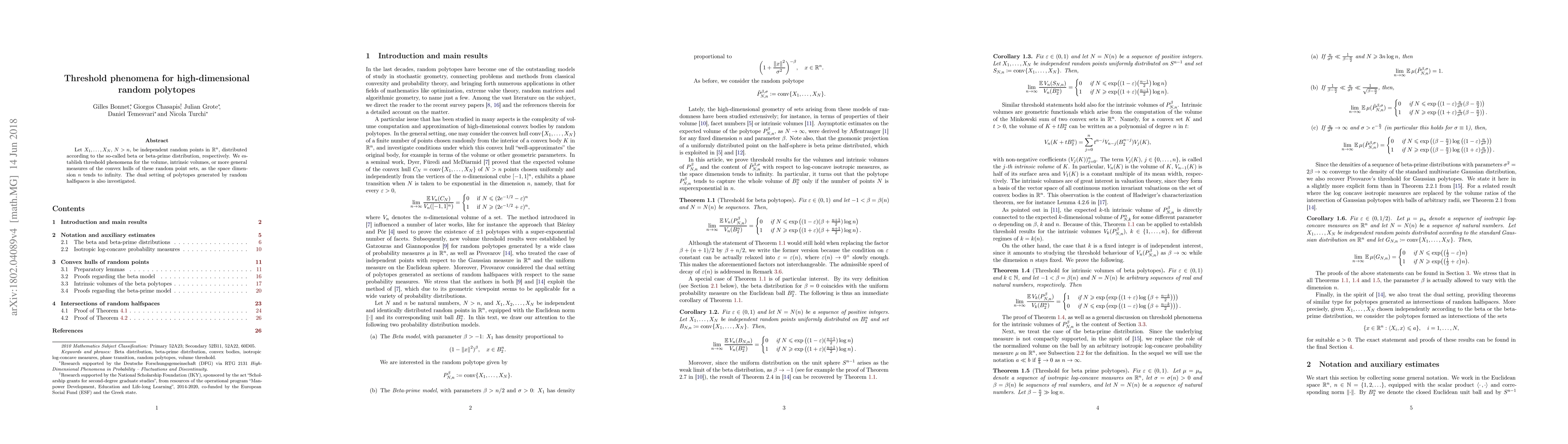 Researchers studied how the volume of random polytopes in high dimensions behaves as the number of points increases, finding threshold phenomena that affect their shape and size.