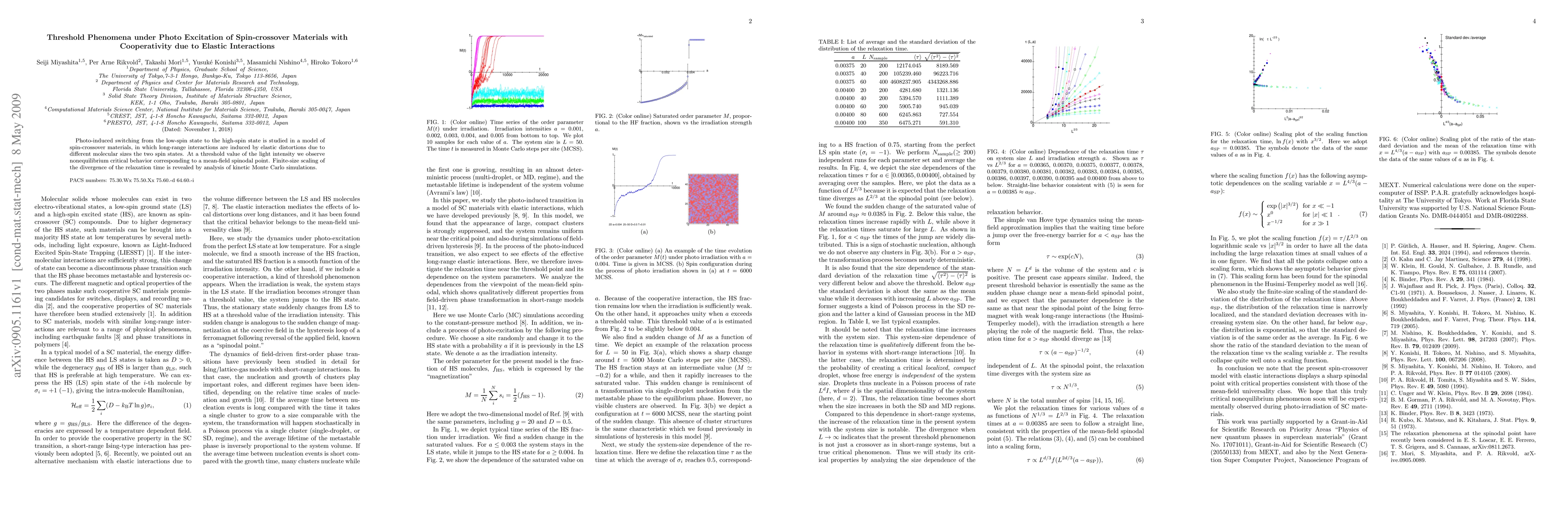 Photo-induced switching from the low-spin state to the high-spin state is studied in a model of spin-crossover materials, in which long-range interactions are induced by elastic distortions due to different molecular sizes the two spin states. At a threshold value of the light intensity we observe nonequilibrium critical behavior corresponding to a mean-field spinodal point. Finite-size scaling of the divergence of the relaxation time is revealed by analysis of kinetic Monte Carlo simulations.