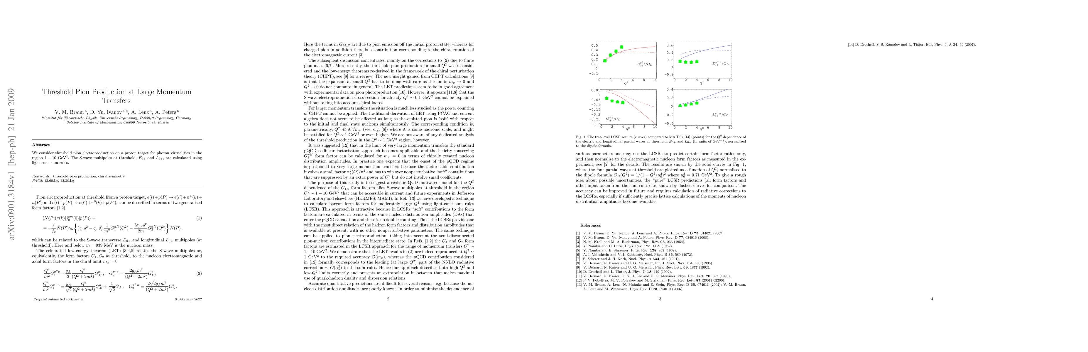 We consider threshold pion electroproduction on a proton target for photon virtualities in the region 1-10 GeV$^2$. The S-wave multipoles at threshold, $E_{0+}$ and $L_{0+}$, are calculated using light-cone sum rules.