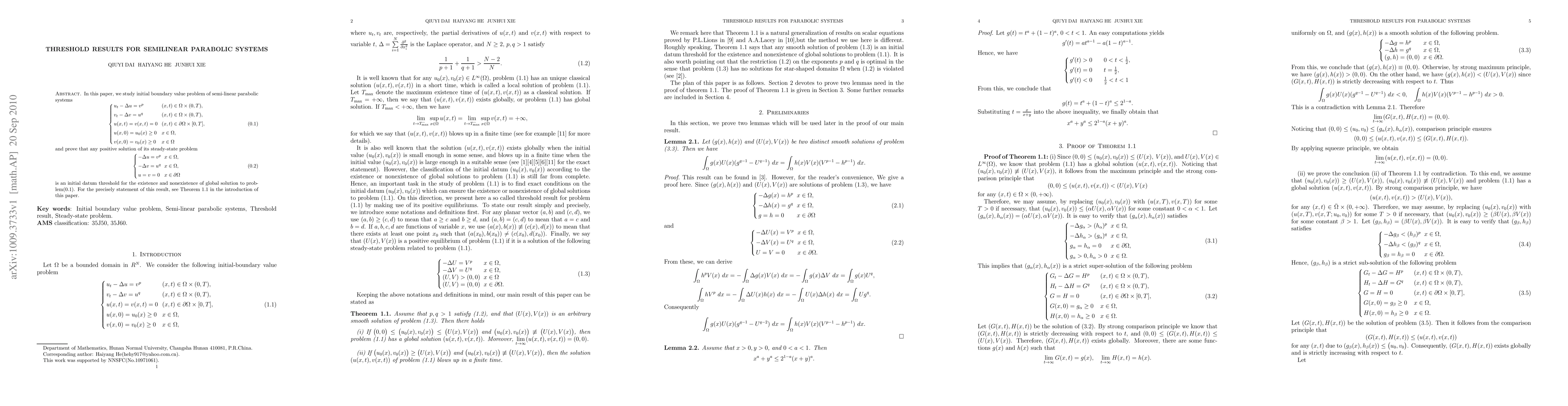 Summary: This paper establishes a threshold result for semilinear parabolic systems featuring pure power type nonlinearities, demonstrating critical behavior under specific conditions. The findings provide insight into the system's dynamics and stability.