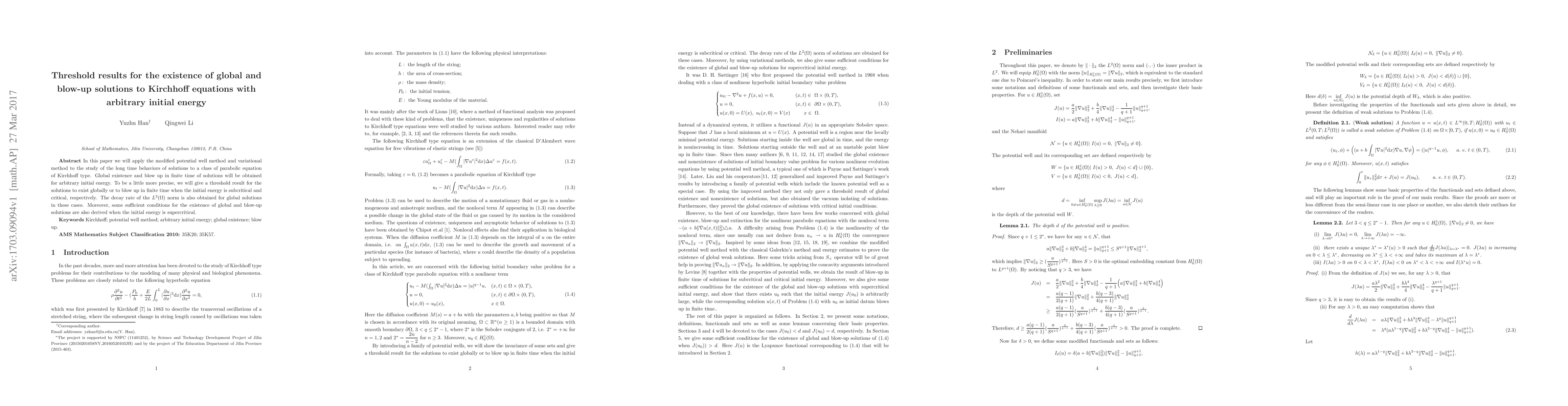 This paper investigates the long-term behavior of solutions to Kirchhoff-type parabolic equations using modified potential well and variational methods. It establishes threshold results for global existence and finite-time blow-up based on initial energy levels, deriving decay rates for global solutions and sufficient conditions for both global and blow-up solutions when initial energy is supercritical.