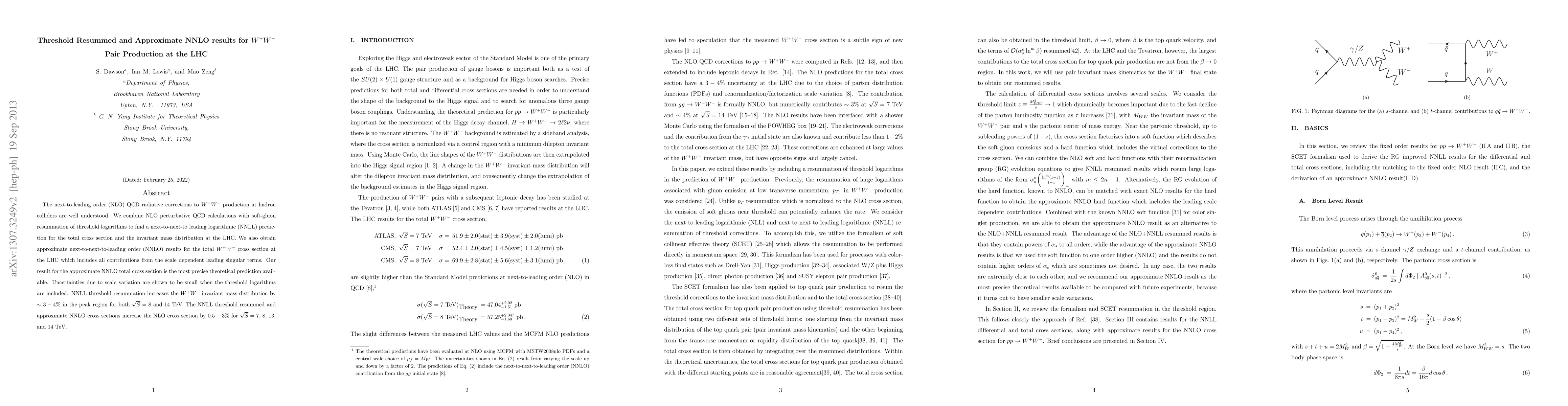 The next-to-leading order (NLO) QCD radiative corrections to W+W- production at hadron colliders are well understood. We combine NLO perturbative QCD calculations with soft-gluon resummation of threshold logarithms to find a next-to-next-to leading logarithmic (NNLL) prediction for the total cross section and the invariant mass distribution at the LHC. We also obtain approximate next-to-next-to-leading order (NNLO) results for the total W+W- cross section at the LHC which includes all contributions from the scale dependent leading singular terms. Our result for the approximate NNLO total cross section is the most precise theoretical prediction available. Uncertainties due to scale variation are shown to be small when the threshold logarithms are included. NNLL threshold resummation increases the W+W- invariant mass distribution by ~ 3-4% in the peak region for both \sqrt{S}=8 and 14 TeV. The NNLL threshold resummed and approximate NNLO cross sections increase the NLO cross section by 0.5-3% for \sqrt{S}=7, 8, 13, and 14 TeV.