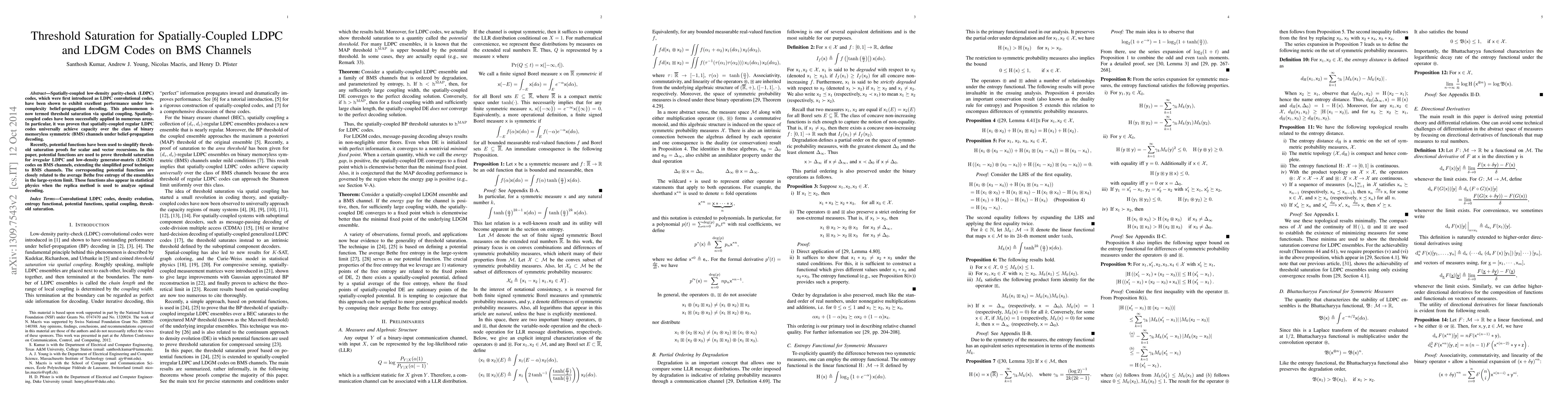 Spatially-coupled low-density parity-check (LDPC) codes, which were first introduced as LDPC convolutional codes, have been shown to exhibit excellent performance under low-complexity belief-propagation decoding. This phenomenon is now termed threshold saturation via spatial coupling. Spatially-coupled codes have been successfully applied in numerous areas. In particular, it was proven that spatially-coupled regular LDPC codes universally achieve capacity over the class of binary memoryless symmetric (BMS) channels under belief-propagation decoding. Recently, potential functions have been used to simplify threshold saturation proofs for scalar and vector recursions. In this paper, potential functions are used to prove threshold saturation for irregular LDPC and low-density generator-matrix (LDGM) codes on BMS channels, extending the simplified proof technique to BMS channels. The corresponding potential functions are closely related to the average Bethe free entropy of the ensembles in the large-system limit. These functions also appear in statistical physics when the replica method is used to analyze optimal decoding.