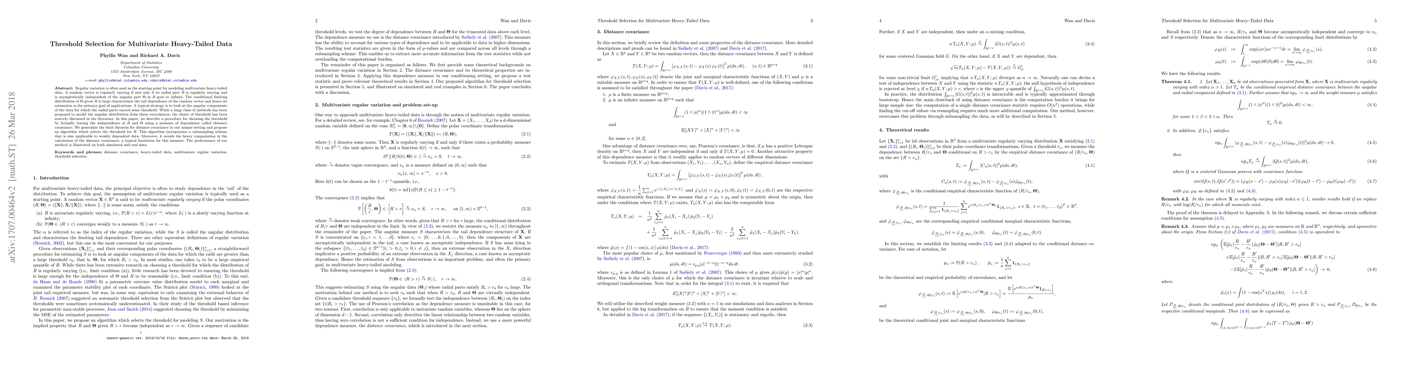 This paper proposes a method for selecting an optimal threshold for modeling multivariate heavy-tailed data, using distance covariance to test independence between radial and angular parts of the data.