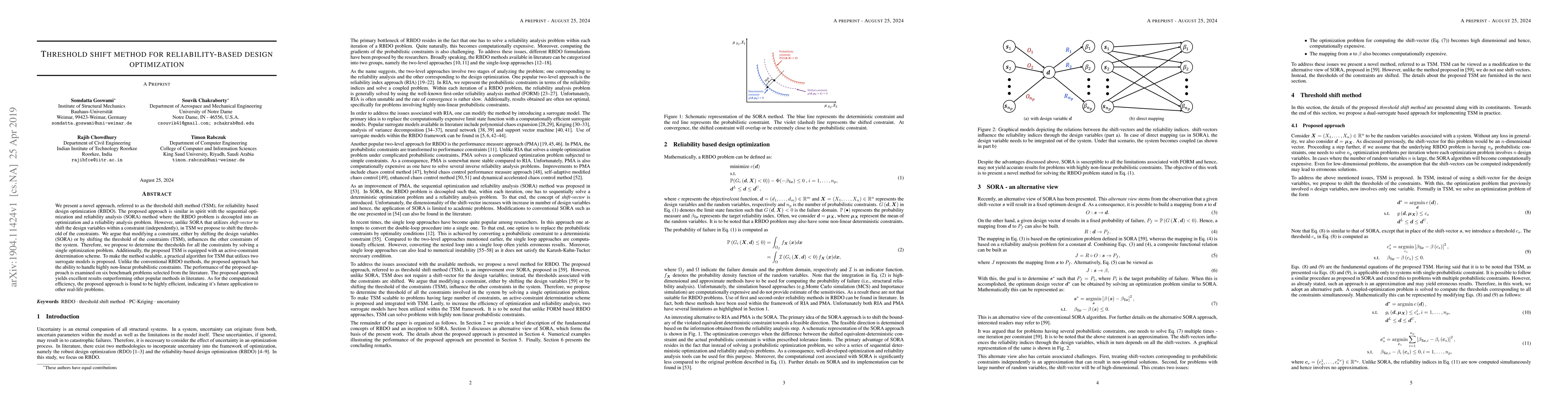 The paper introduces the 'threshold shift method' (TSM) for reliability-based design optimization, which shifts constraint thresholds instead of design variables, solving all thresholds via a single optimization problem. The TSM is efficient and outperforms other methods on benchmark problems, indicating scalability for real-world applications.