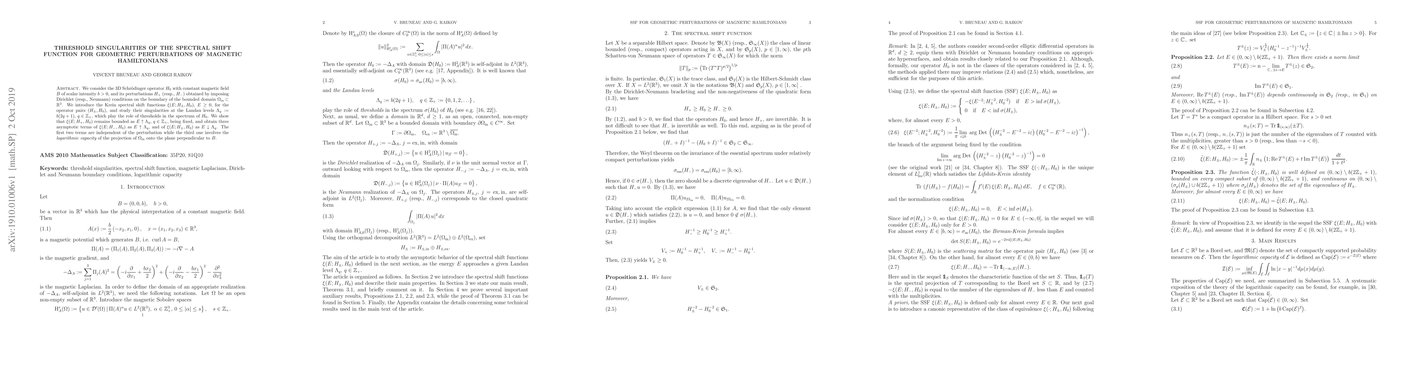 Researchers studied how changes in a magnetic field affect the spectrum of a Schrödinger operator, finding that certain thresholds lead to singularities in the shift function, with implications for understanding quantum behavior.