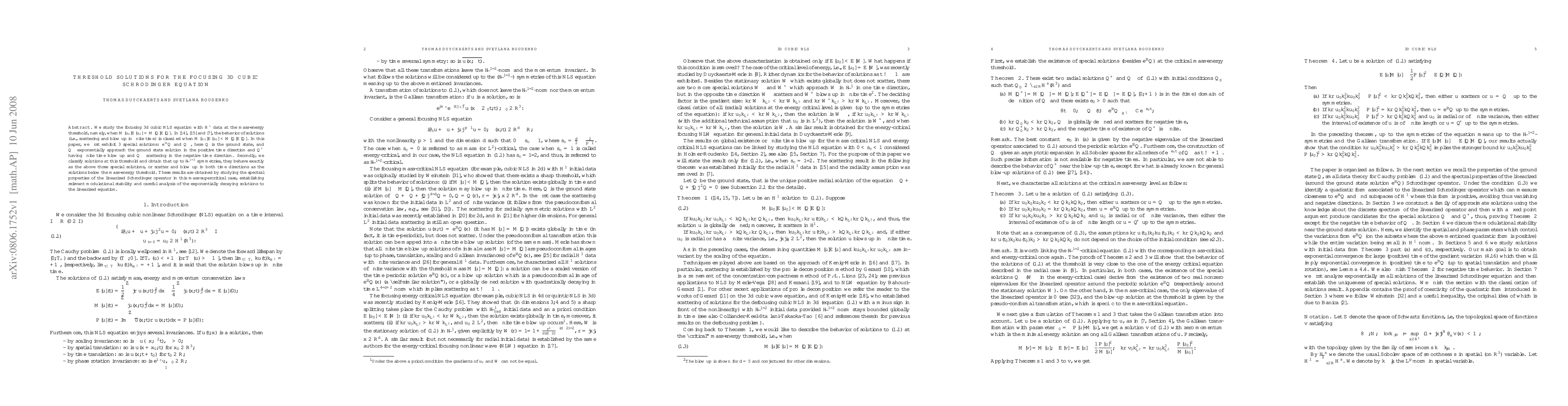 This paper investigates the focusing 3d cubic NLS equation at the mass-energy threshold, identifying three special solutions: Q^+, Q^-, and e^{it}Q. It classifies solutions at this threshold, showing they behave similarly to these special cases or exhibit scattering and blow-up behavior.
