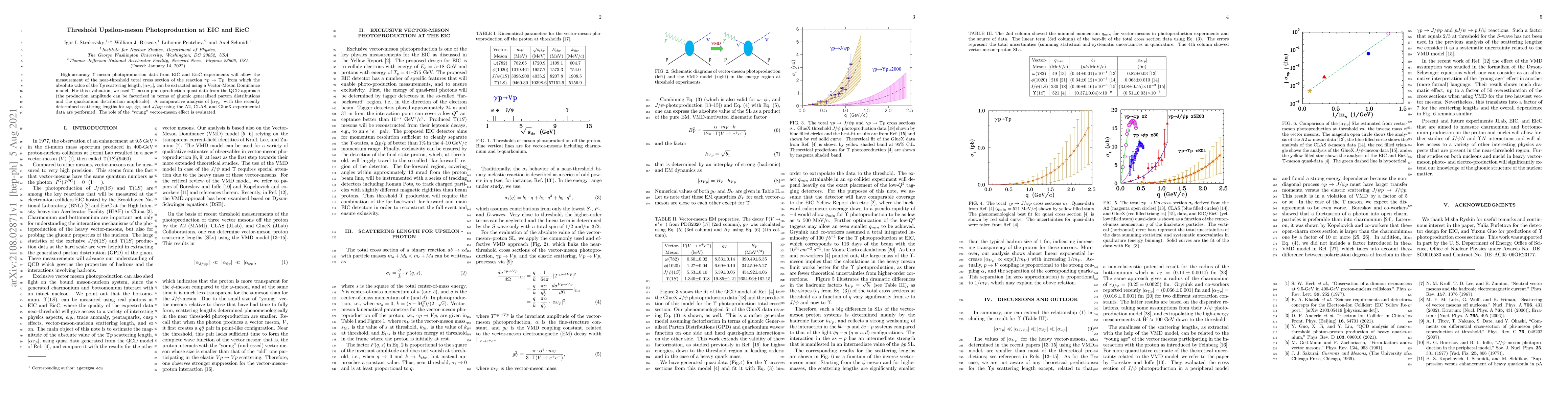 This paper investigates high-accuracy $\Upsilon$-meson photoproduction data from EIC and EicC experiments to measure the near-threshold total cross section and determine the absolute value of the $\Upsilon p$ scattering length using a Vector-Meson Dominance model. It also compares these results with scattering lengths for other vector mesons and assesses the "young" vector-meson effect.
