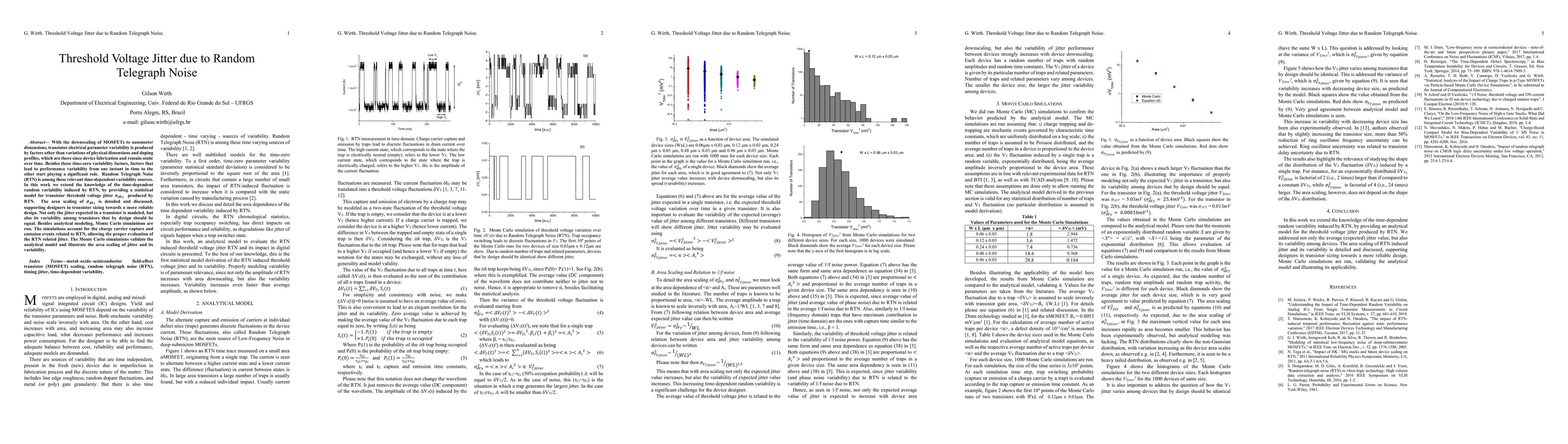 This paper develops a statistical model to quantify the threshold voltage jitter in MOSFETs due to Random Telegraph Noise (RTN), and validates it using Monte Carlo simulations. The study highlights the impact of RTN on transistor variability and provides insights for reliable transistor sizing in nanoscale devices.