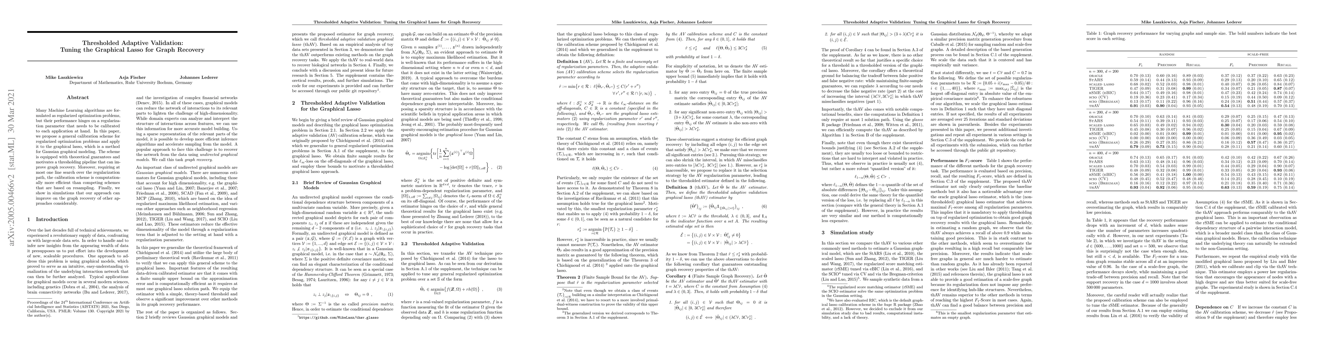 This paper proposes a thresholded adaptive validation scheme for calibrating the regularization parameter in graphical lasso, enhancing graph recovery efficiency and accuracy. It demonstrates superior performance over competing methods in simulations.