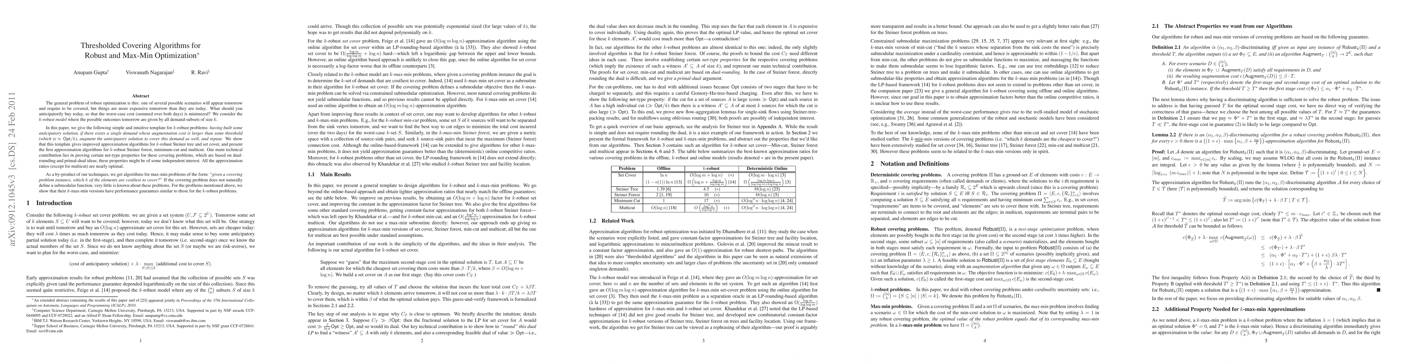 This paper introduces a thresholded covering algorithm template for k-robust optimization problems, achieving improved approximation ratios for k-robust Steiner tree, set cover, and the first for Steiner forest, minimum-cut, and multicut. The techniques also yield algorithms for max-min covering problems.