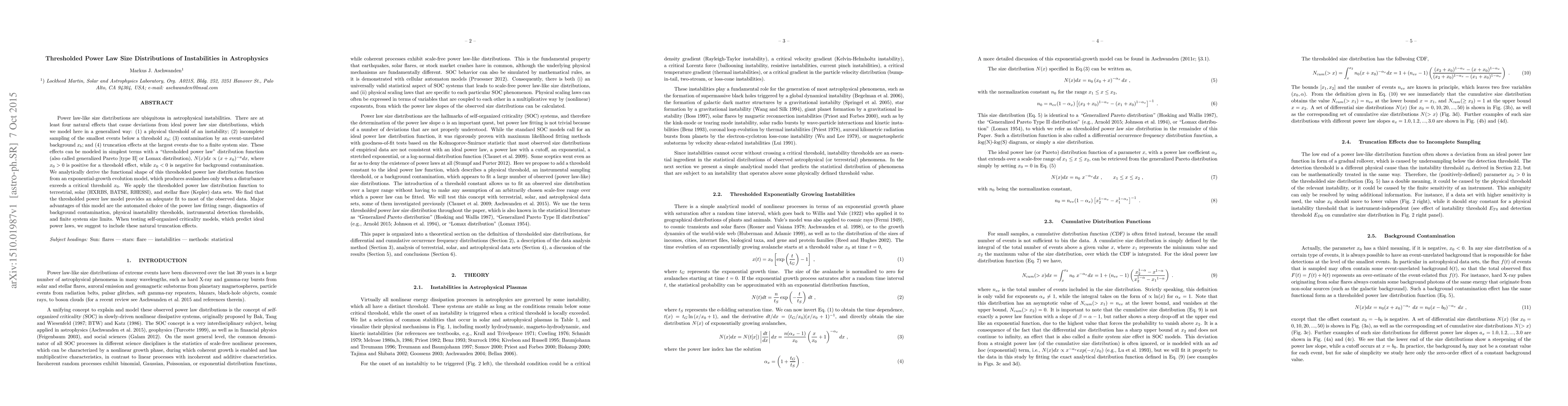 Power law-like size distributions are ubiquitous in astrophysical instabilities. There are at least four natural effects that cause deviations from ideal power law size distributions, which we model here in a generalized way: (1) a physical threshold of an instability; (2) incomplete sampling of the smallest events below a threshold $x_0$; (3) contamination by an event-unrelated background $x_b$; and (4) truncation effects at the largest events due to a finite system size. These effects can be modeled in simplest terms with a "thresholded power law" distribution function (also called generalized Pareto [type II] or Lomax distribution), $N(x) dx \propto (x+x_0)^{-a} dx$, where $x_0 > 0$ is positive for a threshold effect, while $x_0 < 0$ is negative for background contamination. We analytically derive the functional shape of this thresholded power law distribution function from an exponential-growth evolution model, which produces avalanches only when a disturbance exceeds a critical threshold $x_0$. We apply the thresholded power law distribution function to terrestrial, solar (HXRBS, BATSE, RHESSI), and stellar flare (Kepler) data sets. We find that the thresholded power law model provides an adequate fit to most of the observed data. Major advantages of this model are the automated choice of the power law fitting range, diagnostics of background contamination, physical inastability thresholds, instrumental detection thresholds, and finite system size limits. When testing self-organized criticality models, which predict ideal power laws, we suggest to include these natural truncation effects.